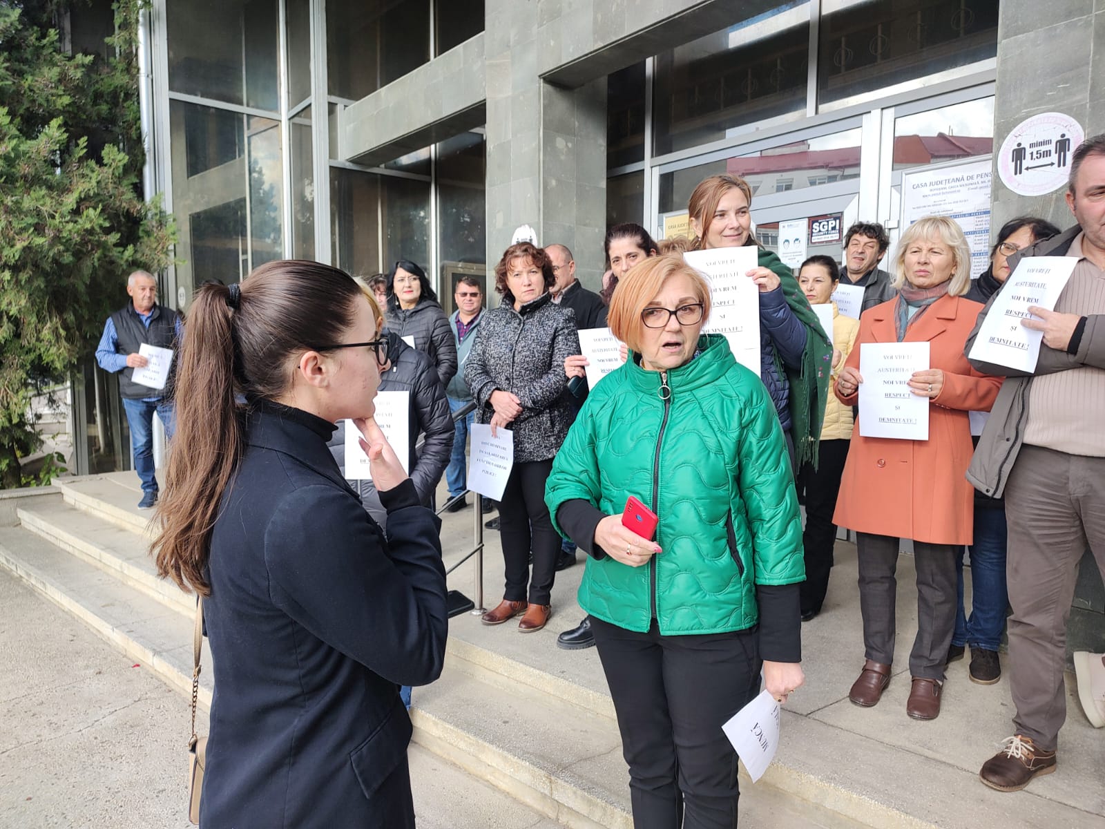 Zeci de angajați de la Casa Județeană de Pensii Botoșani au protestat, astăzi, în fața instituției. Aceștia au oprit lucrul timp de o oră, nemultumiți de salarii și de volumul tot mai mare de muncă.