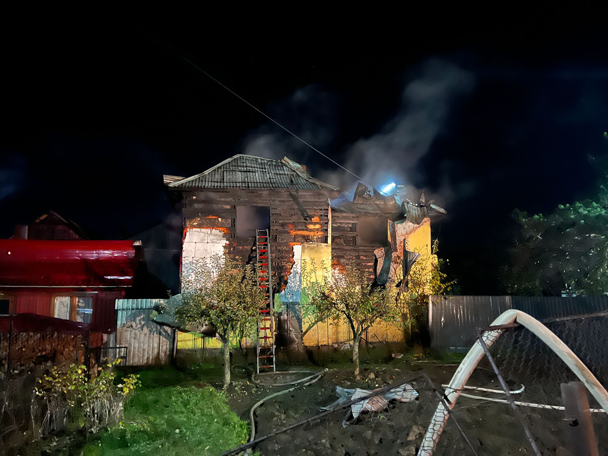 Au ars acoperișul casei de locuit pe o suprafață de aproximativ 150 de metri pătrați, parțial etajul locuinței construit din lemn, elemente de tâmplărie și s-au degradat bunuri din interiorul locuinței.