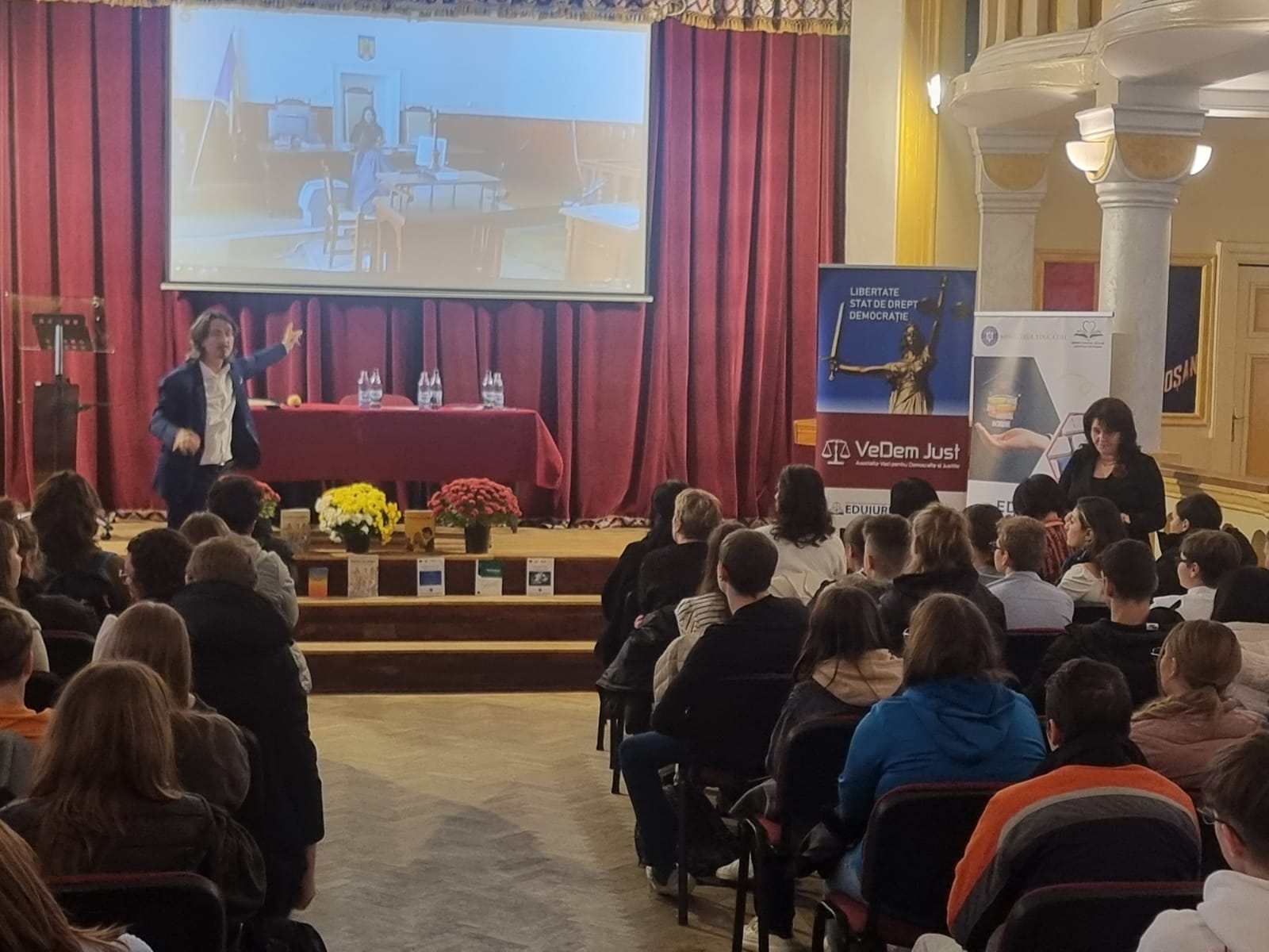 Astăzi, Inspectoratul Școlar Județean Botoșani, în parteneriat cu Asociația Voci pentru Democraţie şi Justiţie, a marcat Ziua Educației Juridice, prin activitatea ,,Ora de juridică’’, desfășurată în Aula ,,Magna’’ a Colegiului Național ,,A.T. Laurian’’ Botoșani.