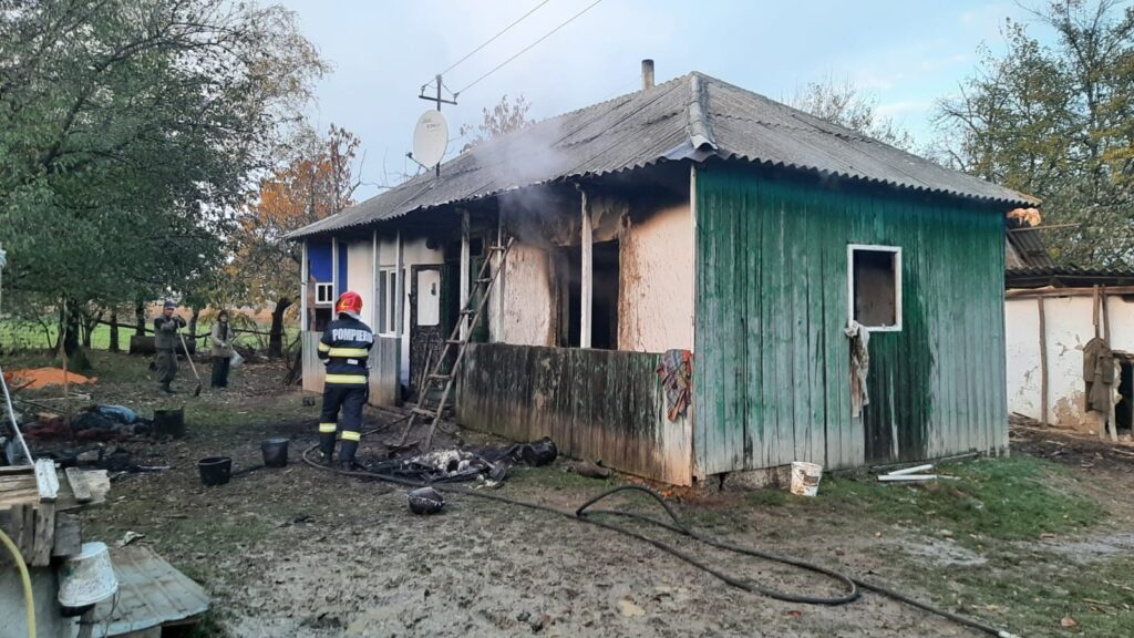 FOTO Locuință cuprinsă de flăcări! Un botoșănean a ajuns cu arsuri la spital