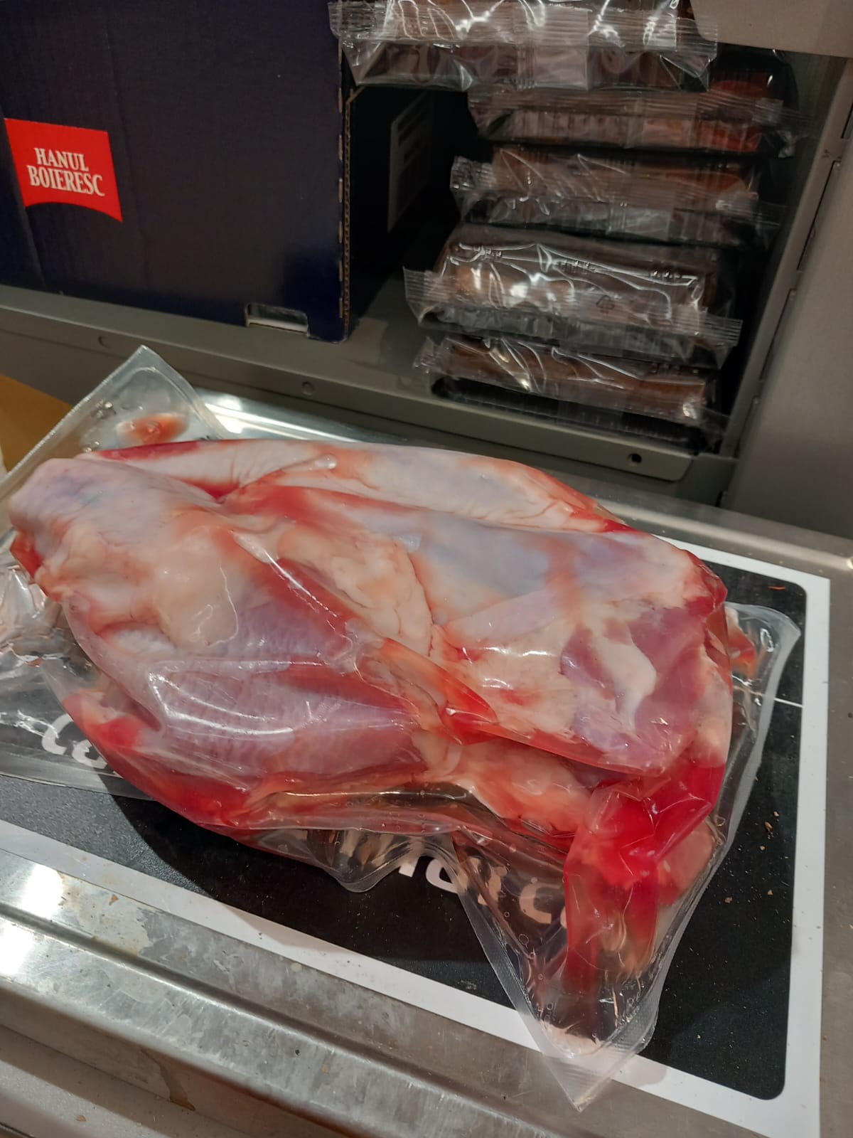 - se comercializează pulpe inferioare de curcan cu os și piele, piept de pui ambalate individual cu exces de lichid și sânge;