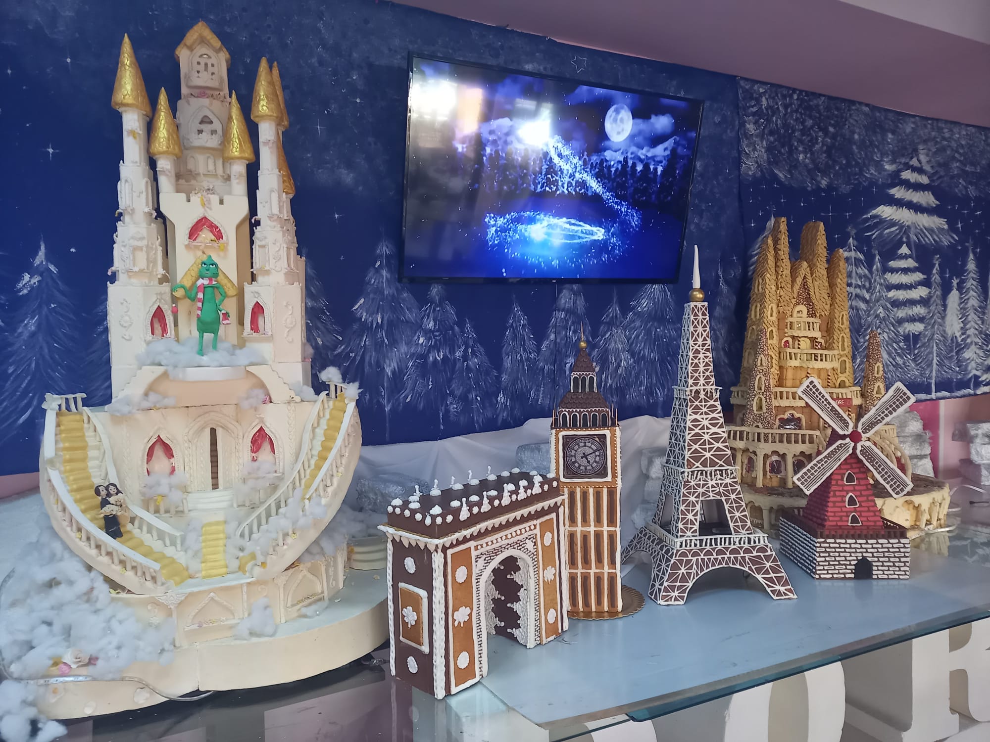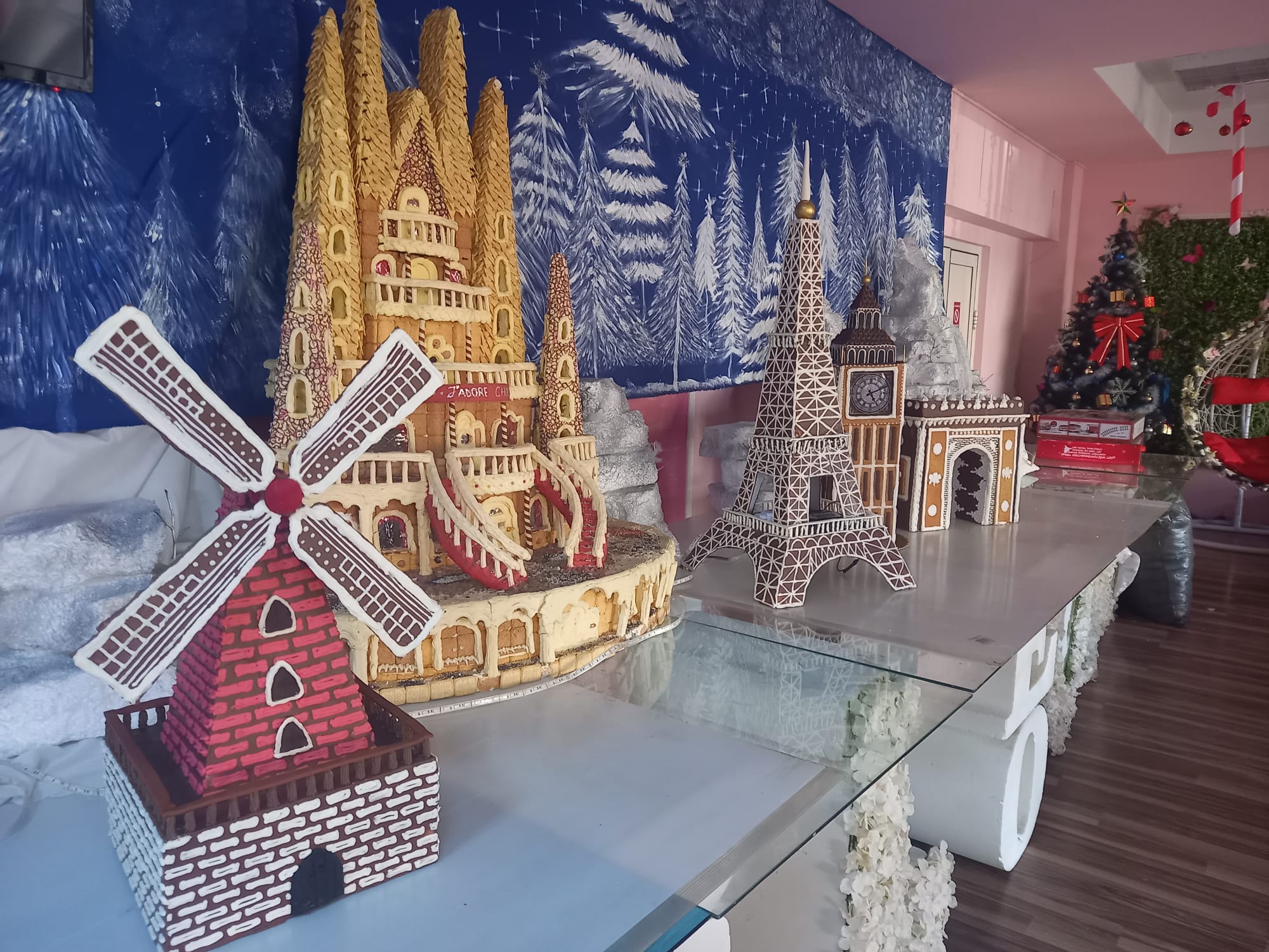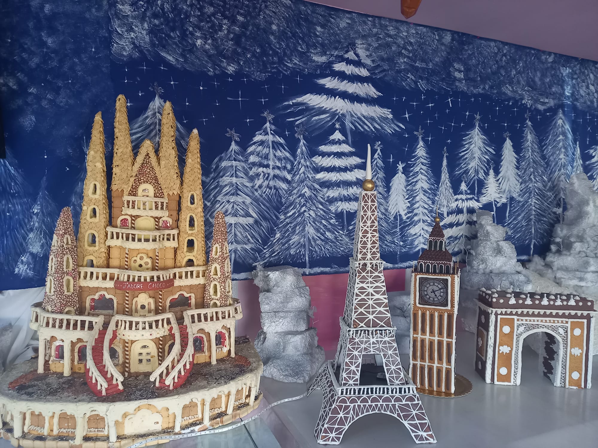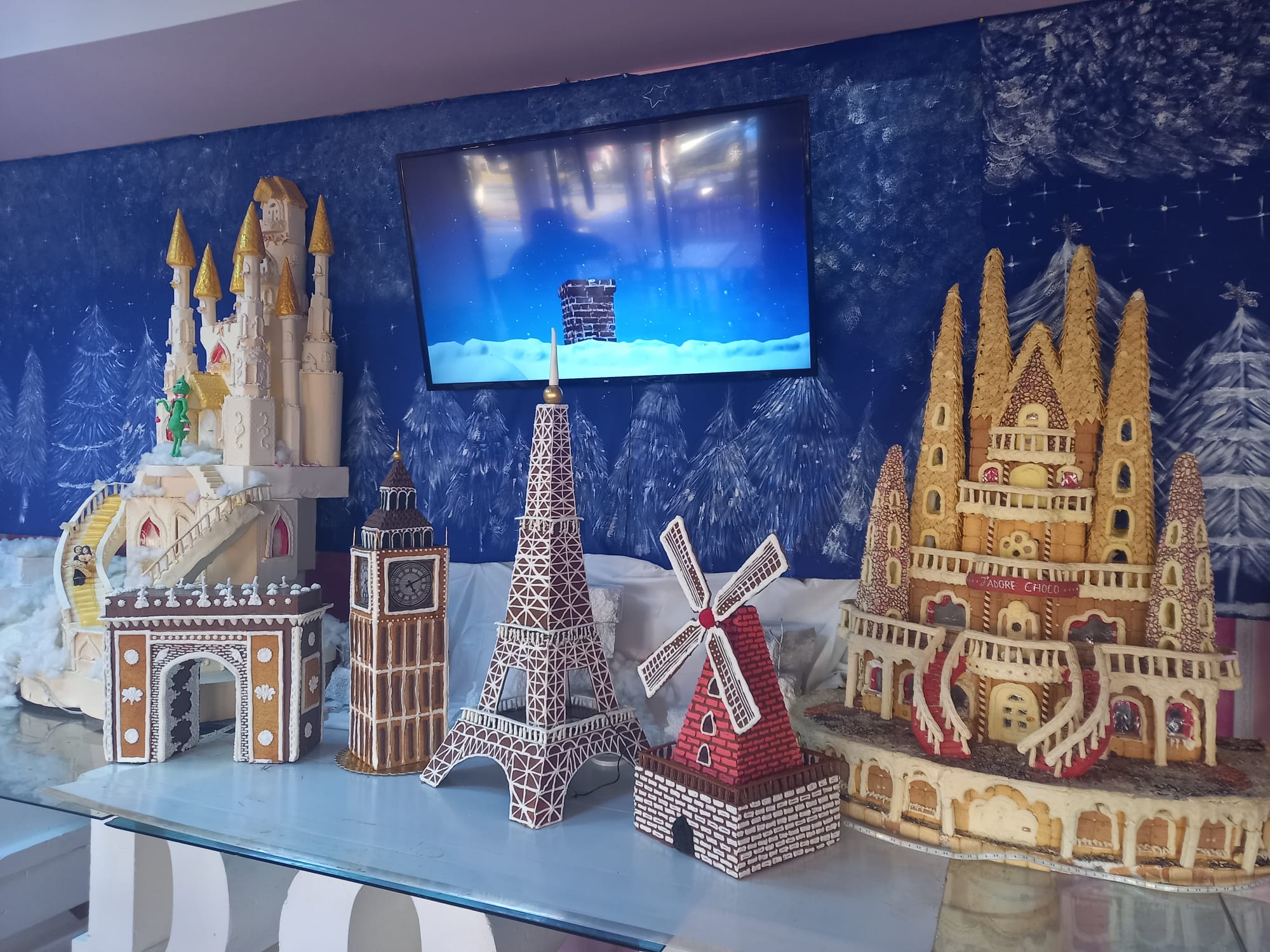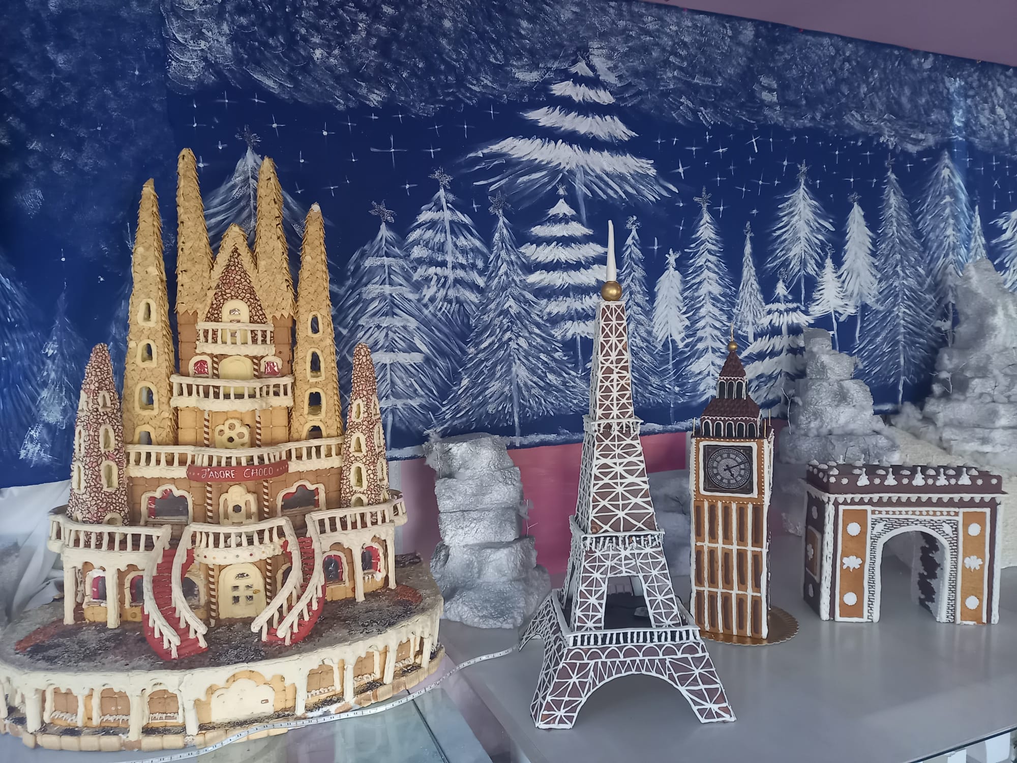 Castelele, Turnul Londrei, Turnul Eiffel, Arcul de Trimf, dar şi numeroasele căsuţe pot fi admirate până pe la jumătate lunii în cofetăria de pe calea Naţională, din apropierea mall-ului.