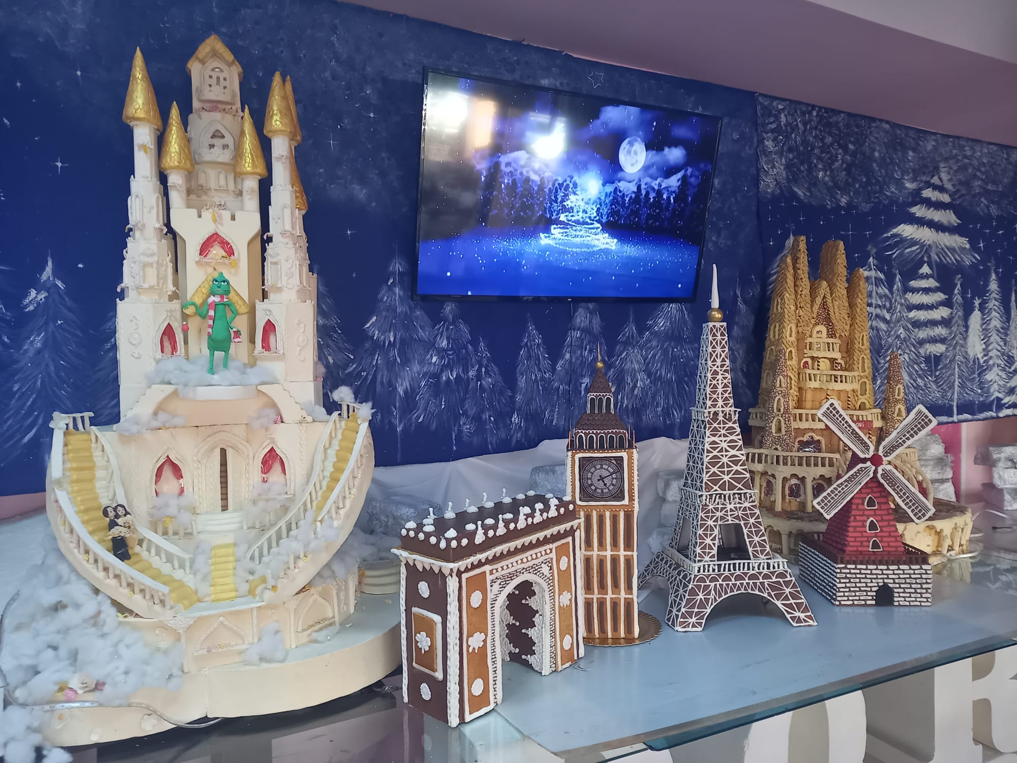 „Sunt făcute din turtă dulce, pastă de zahăr, ciocolată. toate sunt lucrate manual, sunt făcute de la zero. Unele sunt făcute pentru a fio expuse, altele pot fi şi comandate de clienţi„, a adăugat cofetarul.