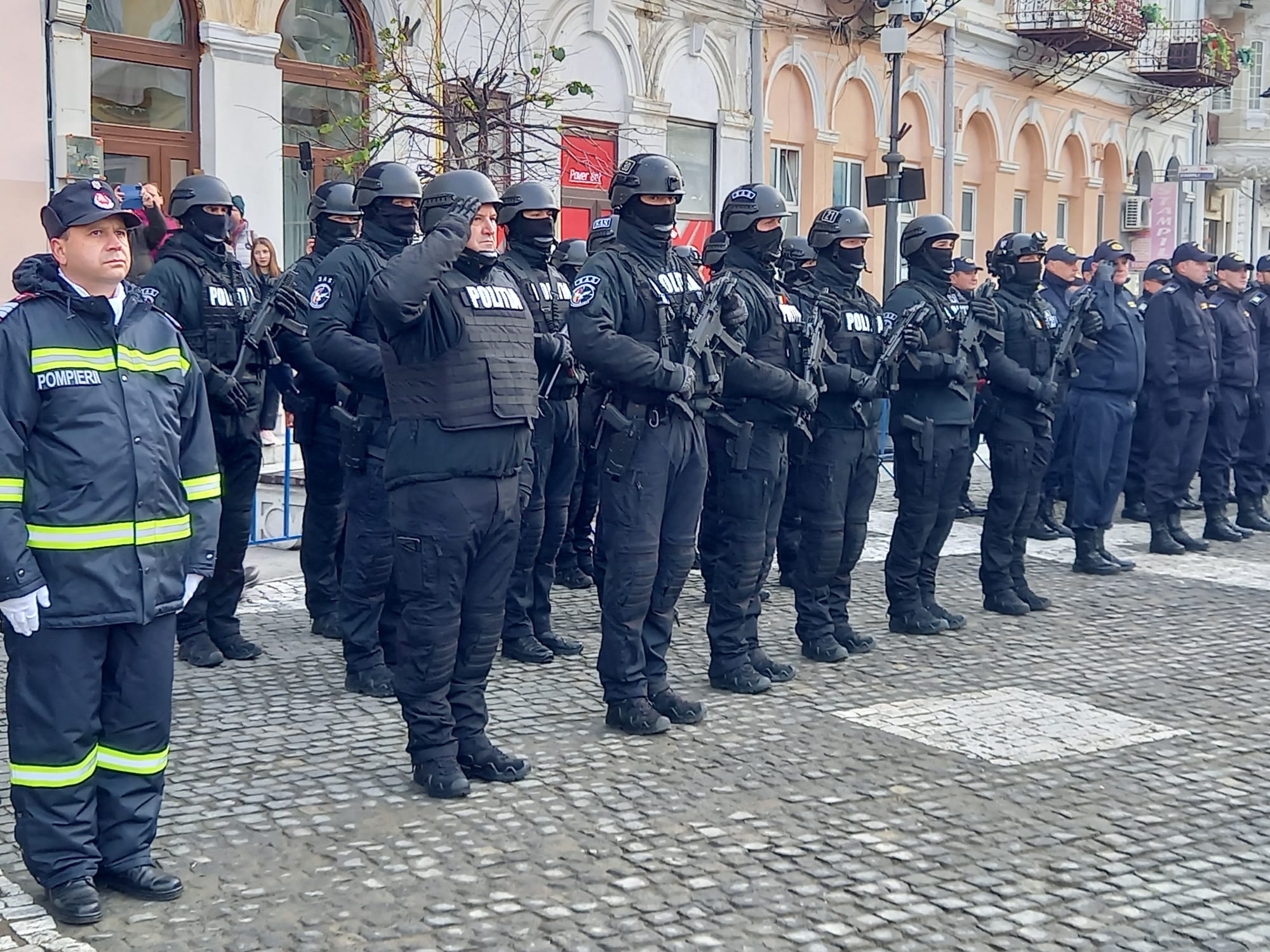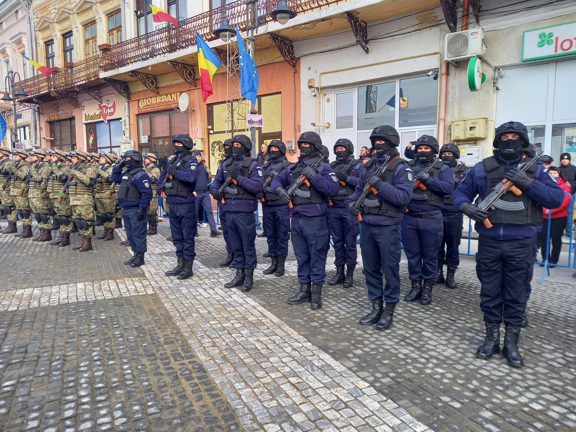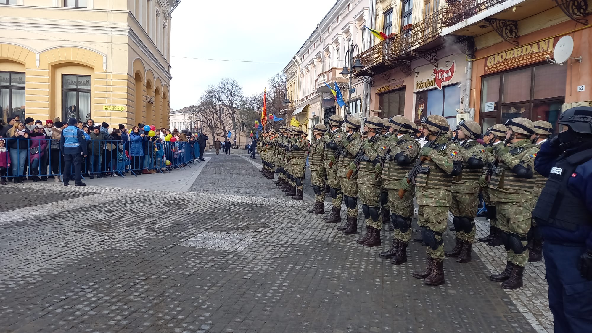 Defilarea detașamentului de onoare și a detașamentului cu tehnică militară va avea loc pe Strada Cuza Vodă, în fața Palatului Administrativ. De la 10.30 are loc defilarea detașamentului de onoare și a detașamentului cu tehnică de intervenție.