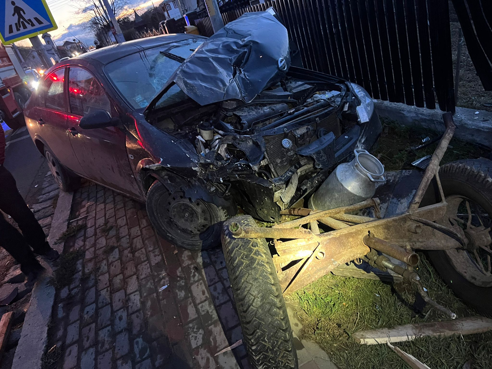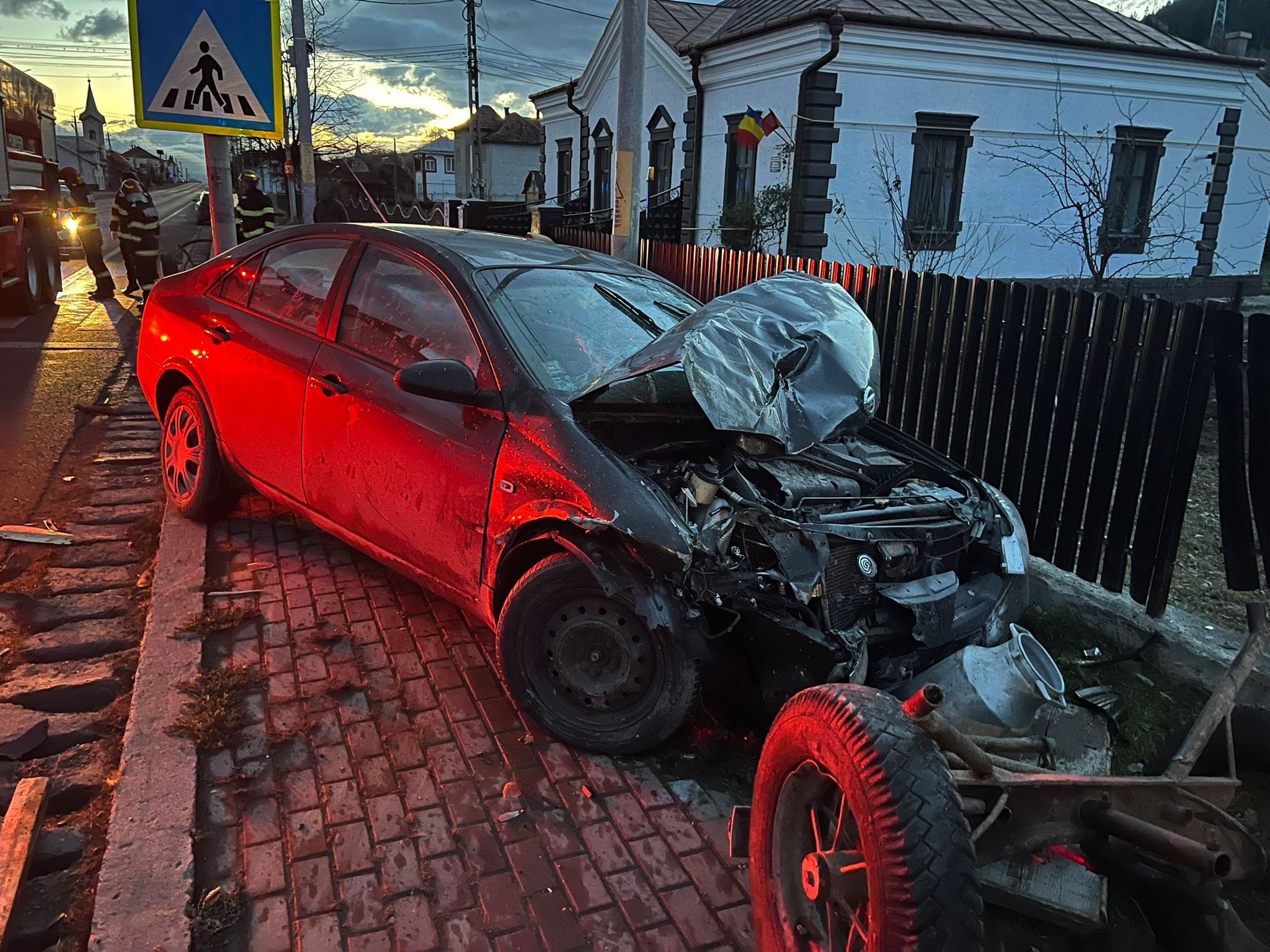 FOTO Accident pe DN17! Un bărbat a fost rănit, iar un cal a murit după impactul dintre o căruță și o mașină