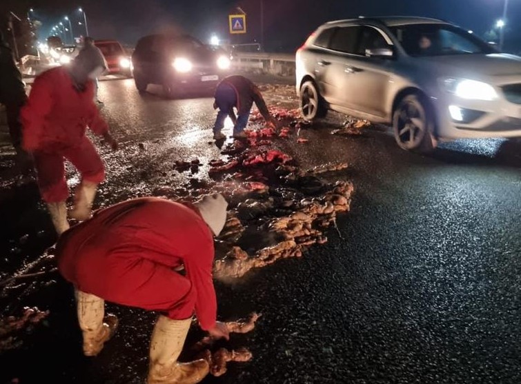 Acum, acestea au fost încărcate într-o mașină cu numere de Botoșani, care urma să le arunce, dar nefiind  asigurată corespunzător, resturile au ajuns pe drumul național 17A, în seara de 5 decembrie.