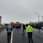 „Trafic blocat temporar pentru măsurătorile Poliției pe DN 28, Războieni, județul Iași, în urma unui accident rutier produs prin coliziunea dintre un autoturism și o autoutilitară. Carosabilul pe acest drum național este umed, la o temperatură de -1°C. Circulați cu atenție!”, a transmis DRDP Iași.