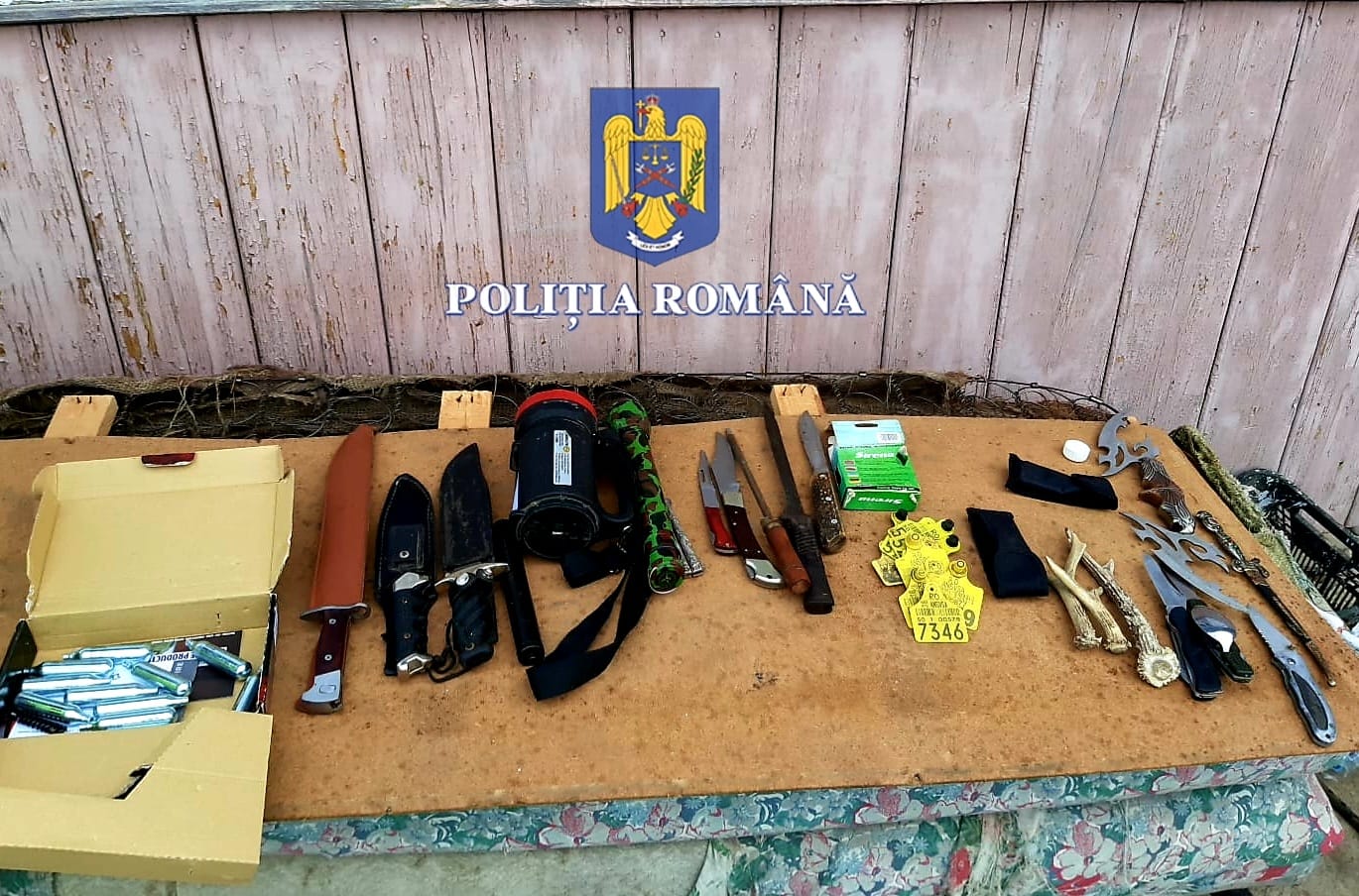 ”În urma activităților desfășurate la locațiile vizate au fost identificate și ridicate mai multe bunuri care prezintă interes în cauză, printre care sulițe, arbalete, săgeți, lațuri, dispozitive se detectare a metalelor, produse pirotehnice și două autovehicule. În același context au fost ridicați 42 de câini metiși de ogar. Totodată, au fost aplicate 19 sancțiuni contravenționale în valoare de aproximativ 80.000 de lei, pentru nerespectarea prevederilor legale privind sterilizarea și microciparea câinilor, precum și pentru deținerea ilegală a detectoarelor de metale”, a precizat Delia Nenișcu.