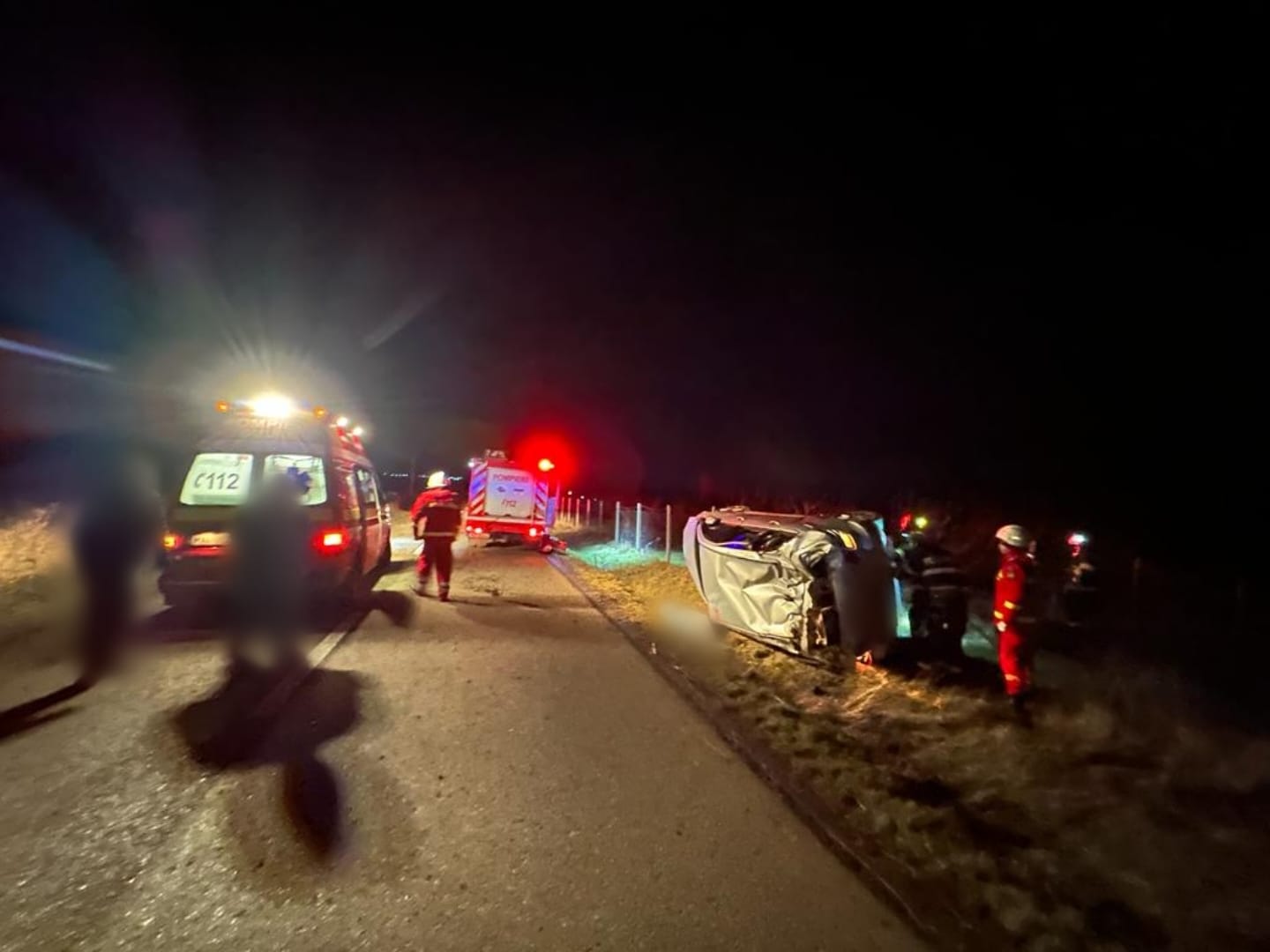 La sosirea echipajelor, a fost găsit un autoturism, care era răsturnat în afara părții carosabile. În exteriorul mașinii, a fost identificată o victimă inconștientă, un tânăr în vârstă de 19 ani.