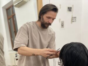 Văzuse o emisiune cu Geta Voinea, o cunoscută hairstylistă, care l-a convins să facă asta. „Nu fac ce mi-am imaginat că o să fac: coafuri pentru designeri, pentru prezentări de modă, pentru shootinguri. Asta am vrut să fac inițial. Apoi mi-am dat seama că nu e de mine și că e mai bine să tund și să vopsesc”.