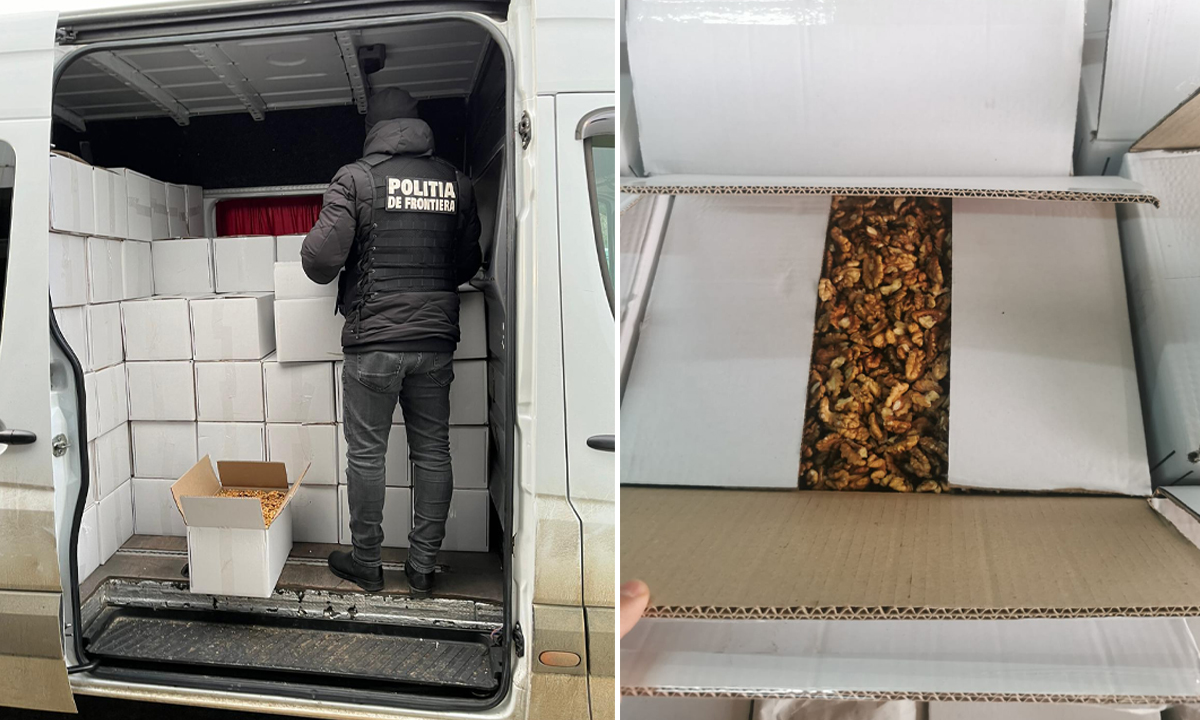 „La controlul efectuat asupra autovehiculului, poliţiştii de frontieră au descoperit în interiorul maşinii peste 300 de cutii ce conţineau aproximativ 2000 kilograme de miez de nucă, în valoare de 40.000 de lei, pentru care bărbatul nu deţinea documente de provenienţă. Cetățeanul a declarat că intenţiona să comercializeze întreaga cantitate de nucă în judeţul Suceava”, arată sursa citată.