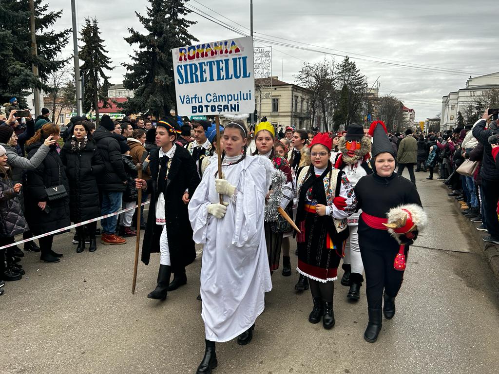 Ulterior, are loc spectacolul pregătit de cele 36 de formaţii de datini și obiceiuri de iarnă participante, la scena amplasată în fața Primăriei Municipiului Botoșani, de la ora 12:00. Pe scenă urcă ansambluri din Ucraina, Republica Moldova, dar și din Bacău, Iași, Bistrița, Sibiu, Botoșani. Pe parcursul întregii zile circulația rutieră va fi oprită pe Str. Cuza Vodă, de la intersecția cu Str. Ștefan Luchian la intersecția cu Str. Marchian.