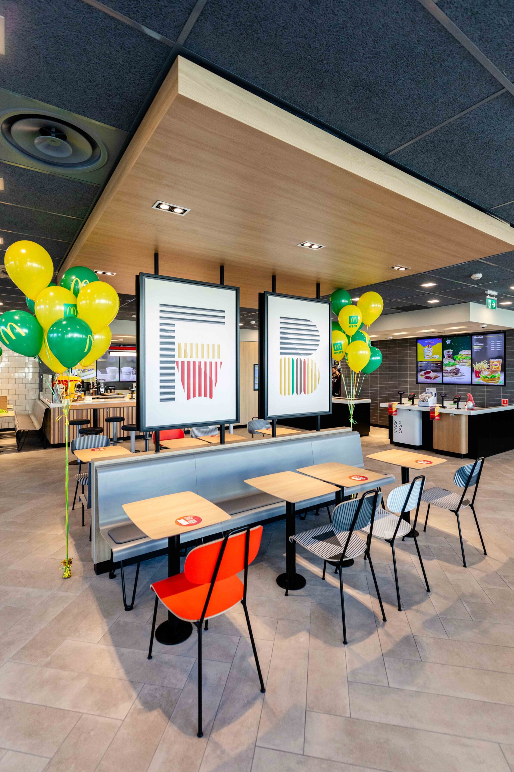 Clienții au la dispoziție numeroase opțiuni pentru a se bucura de produsele preferate: în restaurant sau pe terasă, pot comanda prin serviciul de McDelivery sau pot lua la pachet, la McDrive. Pentru cei pasionați de cafea și deserturi, spațiul dispune și de McCafé®. Restaurantul are un design modern și o suprafață generoasă de aproximativ 400 metri pătrați.