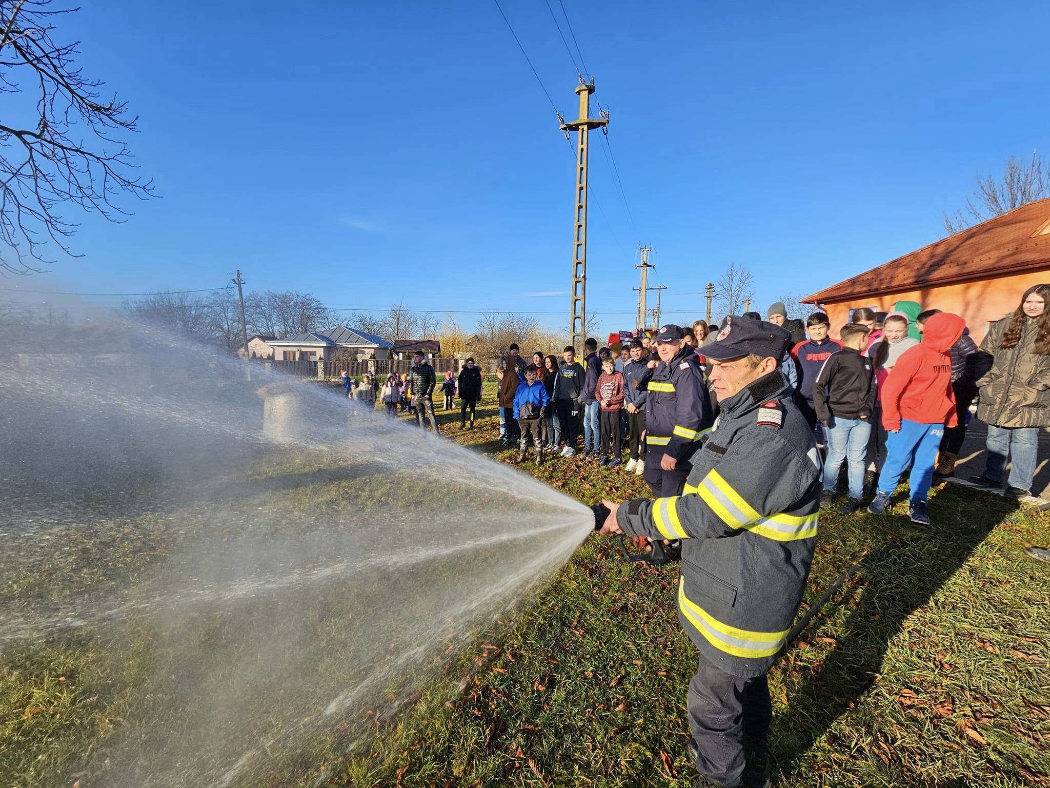 Autospecialele de intervenție au fost, însă, punctul de atracție. Elevii au avut ocazia să urce în acestea și să probeze echipamentele de protecție folosite de pompieri în misiunile operative. Unii dintre ei au testat presiunea furtunelor ca și când ar fi stins un incendiu.