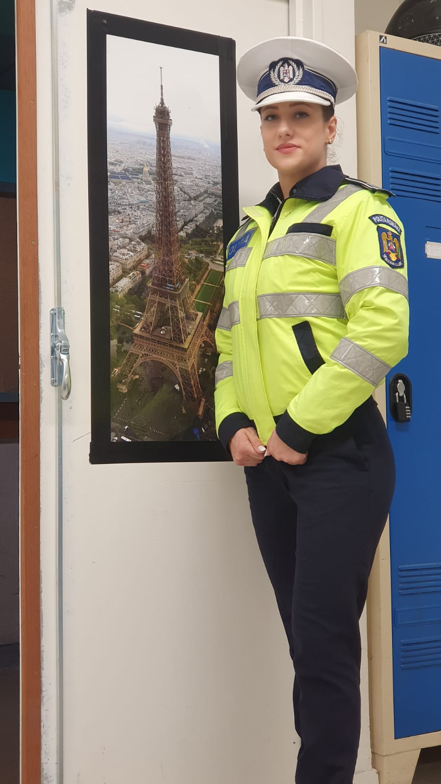 Simona Țurcanu, din cadrul Biroului Rutier patrulează, în această perioadă, în Paris, în special în zona turnului Eiffel, atât împreună cu polițiștii francezi, cât și cu polițiști din alte țări europene.