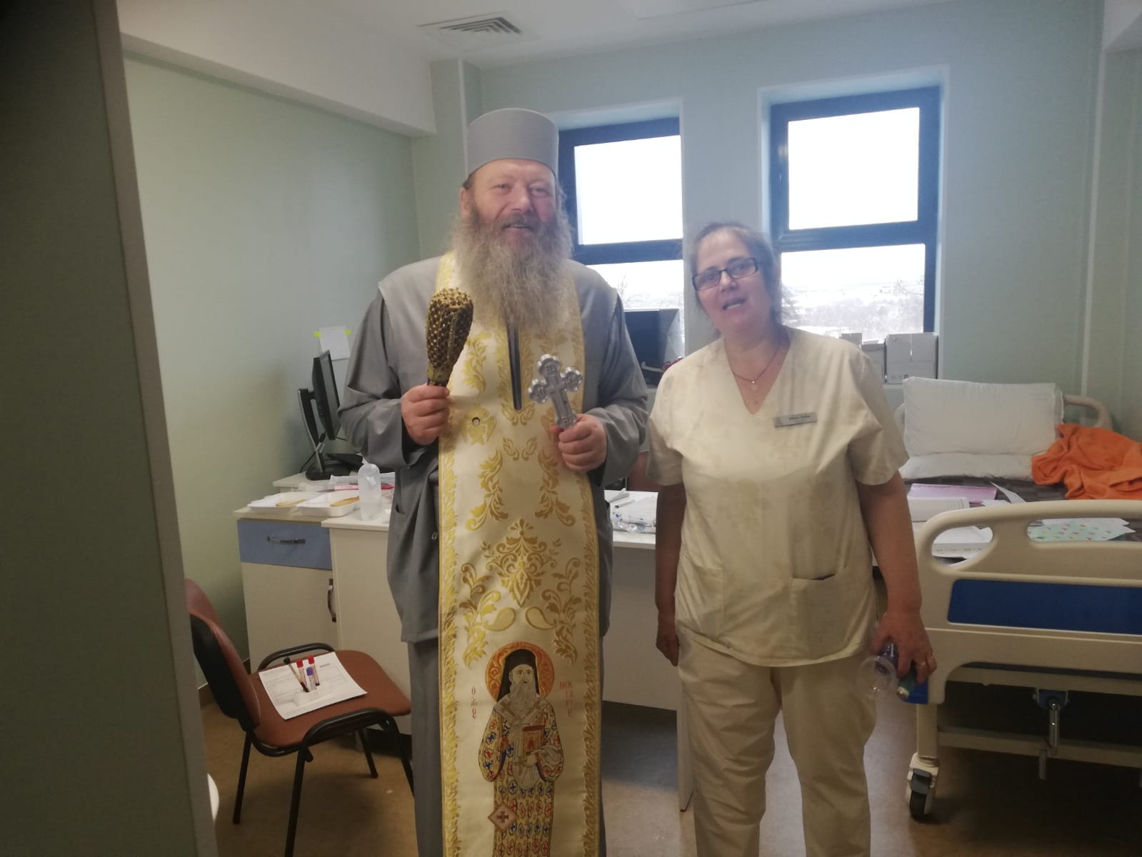 „Astăzi am fost și am vizitat toate saloanele, cabinetele, blocul Administrativ, bucătăria, centrala termica Stația de Ambulanță și toate încăperile acestui modern Spital inclusiv Ambulatoriul de Specialitate sau Policlinica cum mai este ea cunoscută de toată lumea. Au fost făcute lucrări frumoase fără precedent aș spune eu și sigur nu greșesc. Rugăm pe bunul Dumnezeu să ne binecuvânteze și să ne ajute să vedem finalizate aceste lucrări și să construim și un Paraclis aici în curtea Spitalului Municipal ca o încununare a tuturor lucrărilor săvârșite”, a spus părintele.