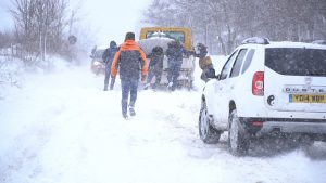 Dacă sunteți nevoiți să porniți la drum, informați-vă despre condițiile de trafic. Puneți în mașină lucruri necesare în caz de urgență: lanțuri antiderapante, lopată pentru zăpadă, lanternă, un sac cu nisip, apă, pături, încărcător pentru telefon.