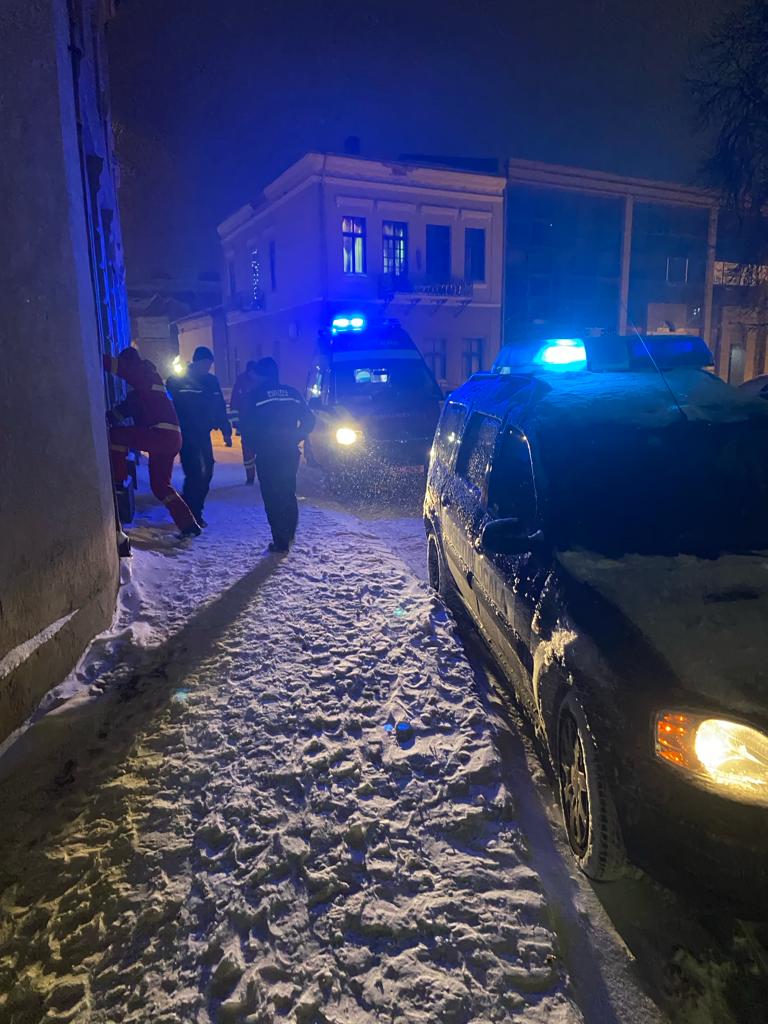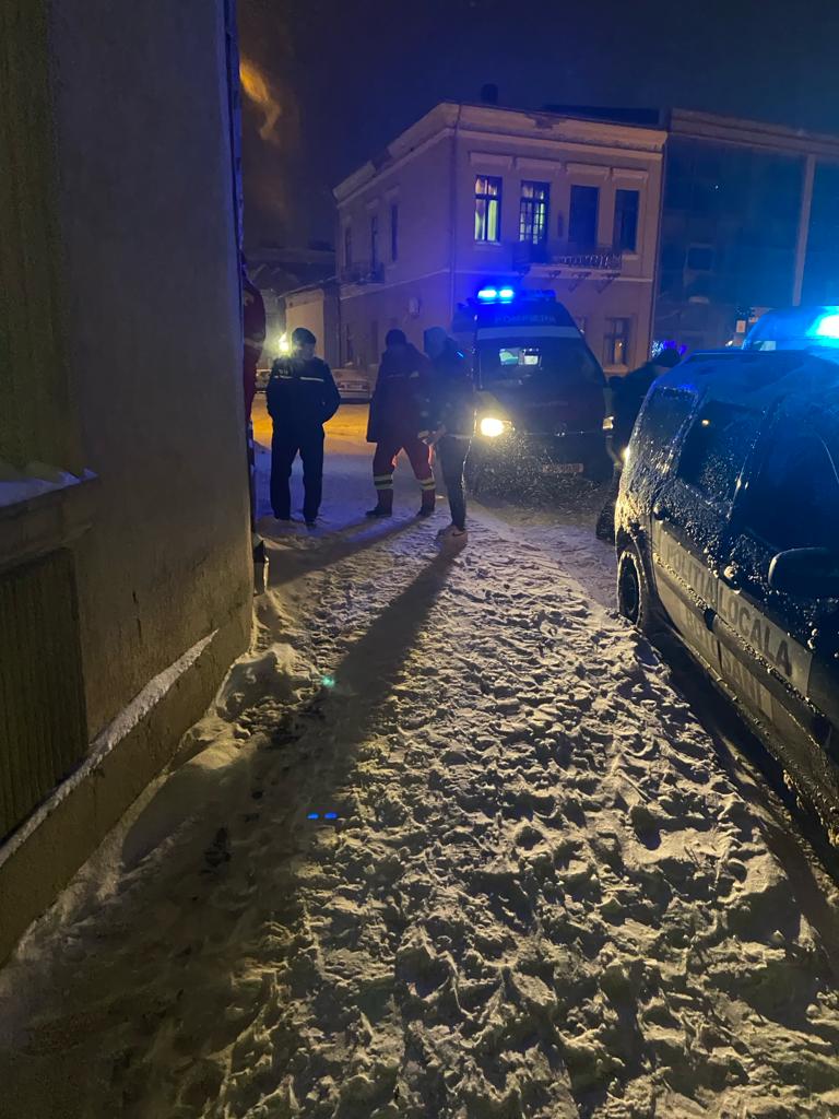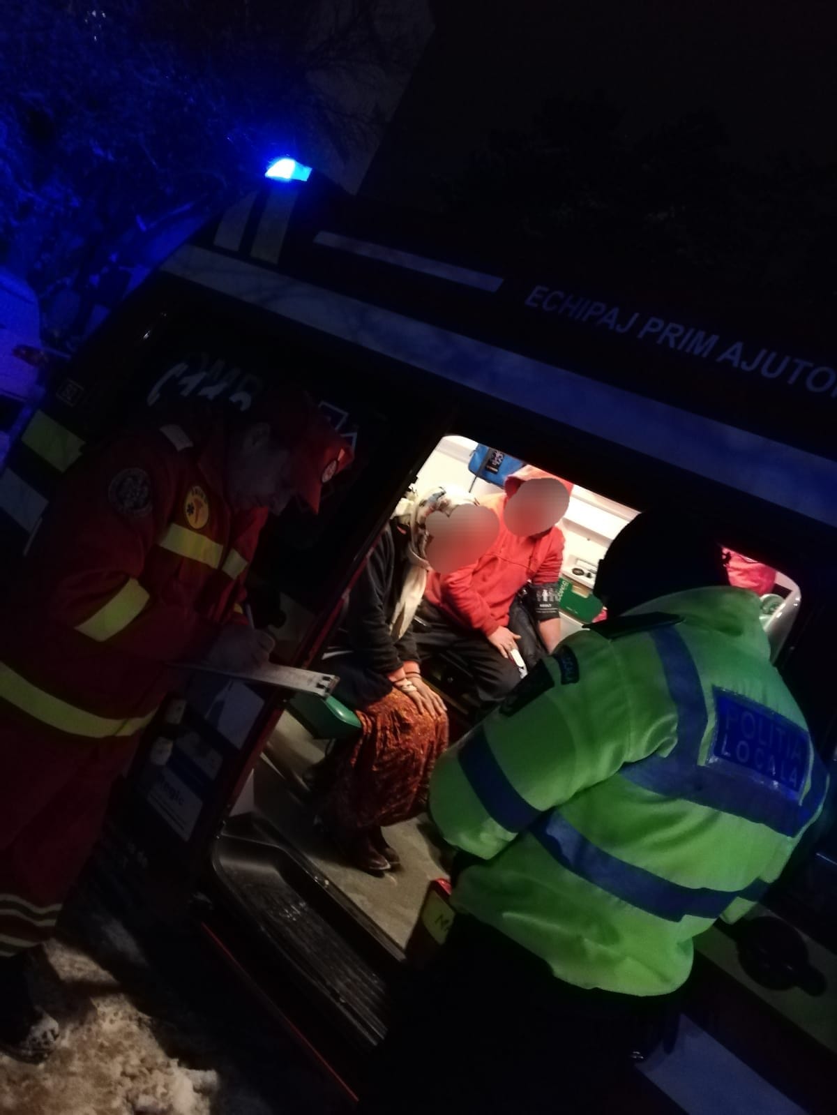 FOTO Oameni ai străzii din Botoșani și Dorohoi, care stăteau în frig, preluați de pompieri și polițiștii locali și duși la adăpost