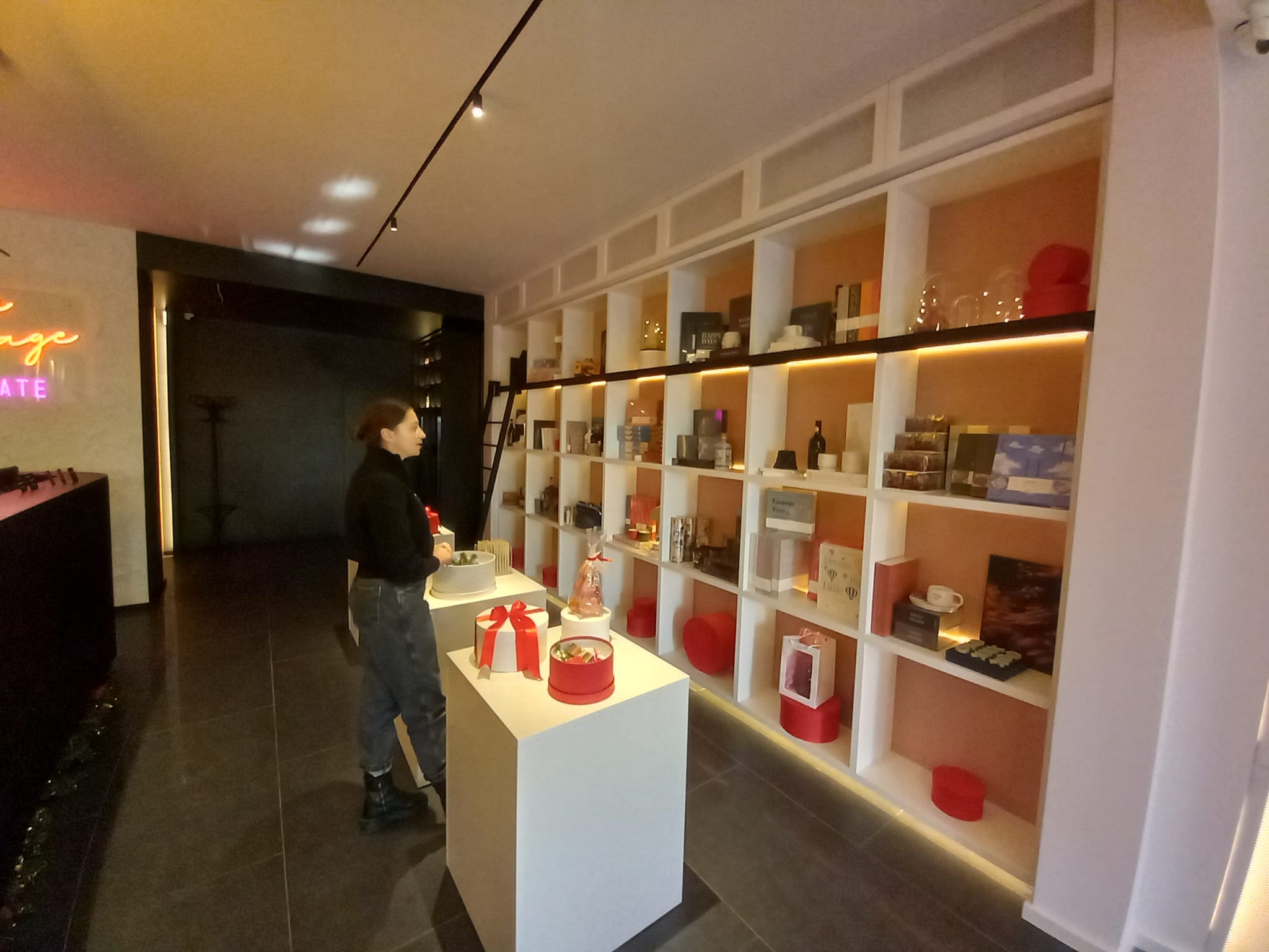 Bianca a lucrat cu un arhitect profesionist pentru decorarea magazinului, iar toate produsele expuse în incinta acestuia pot fi cumpărate. De la brăduți, la tablourile realizate de pictori locali, băuturi fine, dar mai ales delicioasa ciocolată.