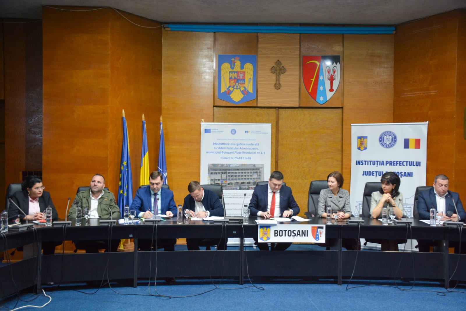 Palatul administrativ va fi reabilitat termic. Prefectul județului Botoșani, Sorin Cornilă, a semnat, astăzi, contractul de execuție a investiției “Eficientizare energetică moderată a clădirii Palatului Administrativ” în cadrul Planului Național de Redresare și Reziliență.