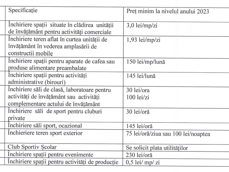 Administraţia locală a stabilit tarifele la terenurile de fotbal pe care şcolile din municipiul Botoşani le oferă spre închiriere persoanelor interesate. Astfel, potrivit unei hotărâri adoptate în această săptămână de Consiliul Local, unităţile de învăţământ trebuie să perceapă un tarif minim de 75 de lei/oră pe timpul zilei şi minim 100 de lei pe timpul nopţii, atunci când este utilizat sistemul de iluminat al terenului.