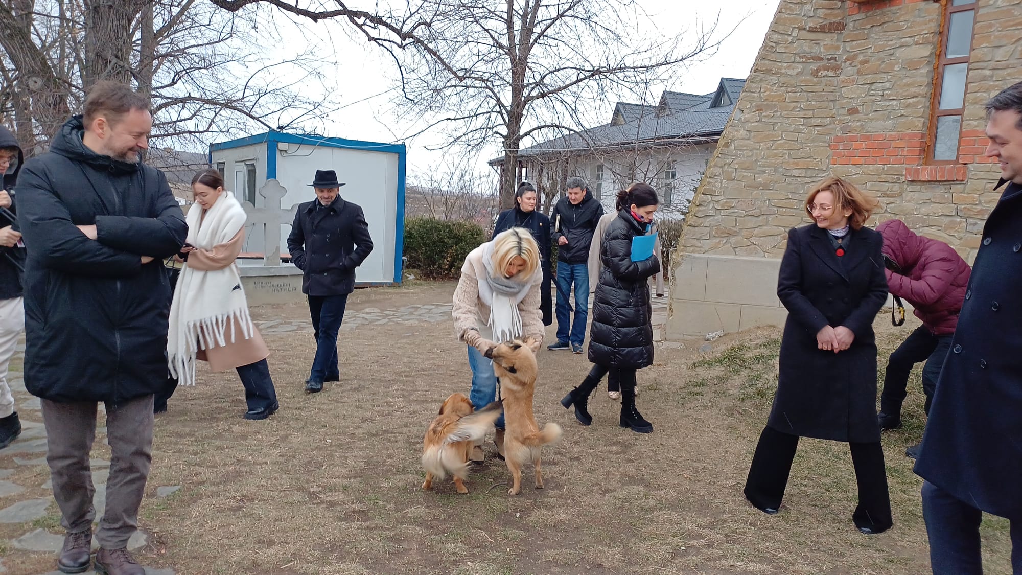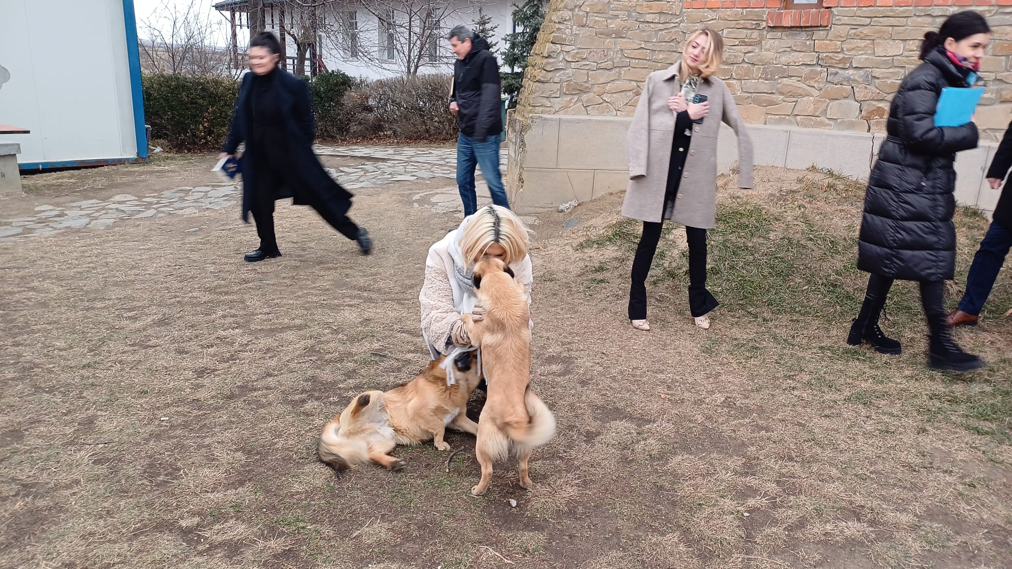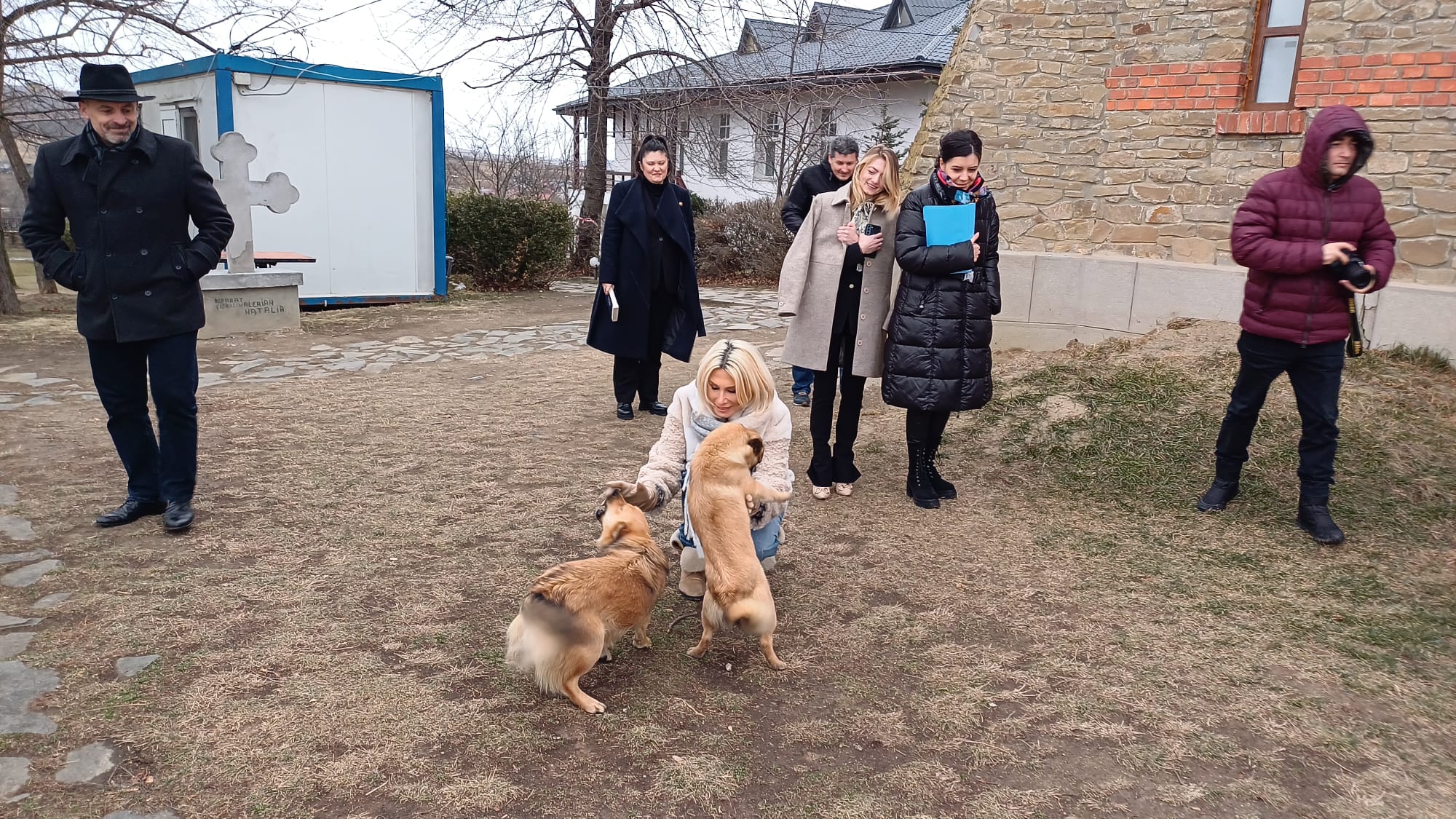 Toți cei prezenți au fost plăcut surprinși de reacția celor doi căței, iar Raluca Turcan chiar a fost vizibil încântată de primirea călduroasă pe care i-au arătat-o patrupedele. Animăluțele s-au mai potolit abia când prefectul Sorin Cornilă a intervenit să o „salveze”.