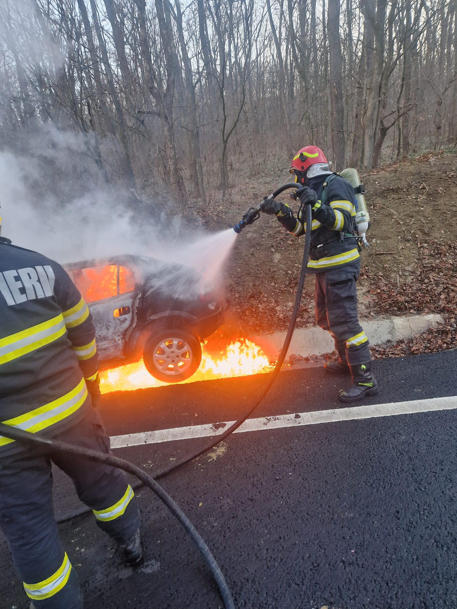 Pompierii din cadrul Detașamentului Botoșani au intervenit cu o autospecială de stingere, una de descarcerare, dar și două ambulanțe aparținând Serviciului Județean de Ambulanță Botoșani. Aceștia au constatat că cele două persoane erau ieșite din autoturism și că mașina ardea în totalitate, potrivit reprezentanților Inspectoratului Județean pentru Situații de Urgență Botoșani.