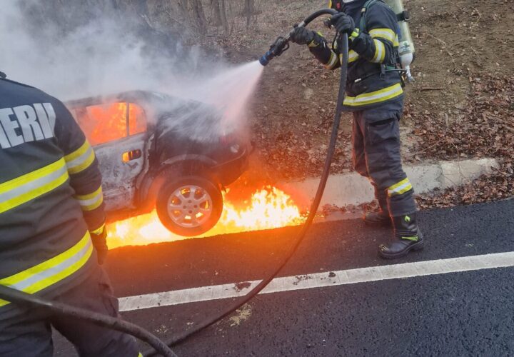 FOTO & VIDEO O mașină a ars ca o torță după ce a fost implicată într-un accident, la Zăicești. Două femei s-au salvat