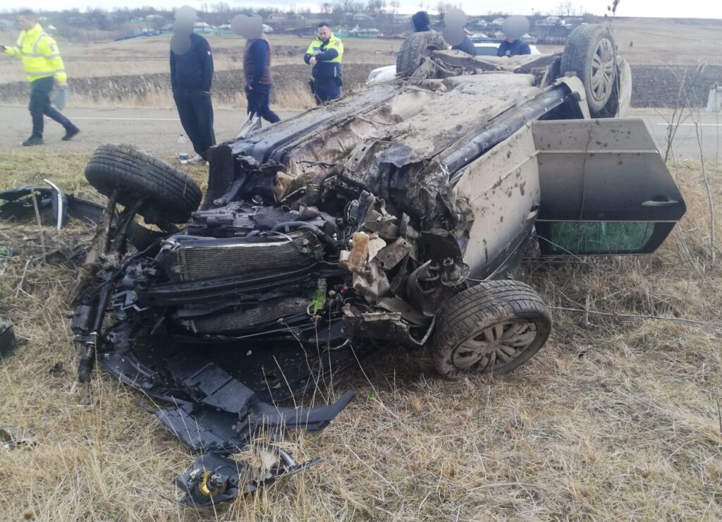 FOTO Doi bărbați răniți într-un accident la Botoșani. Mașina s-a făcut zob după ce s-a izbit de un cap de pod