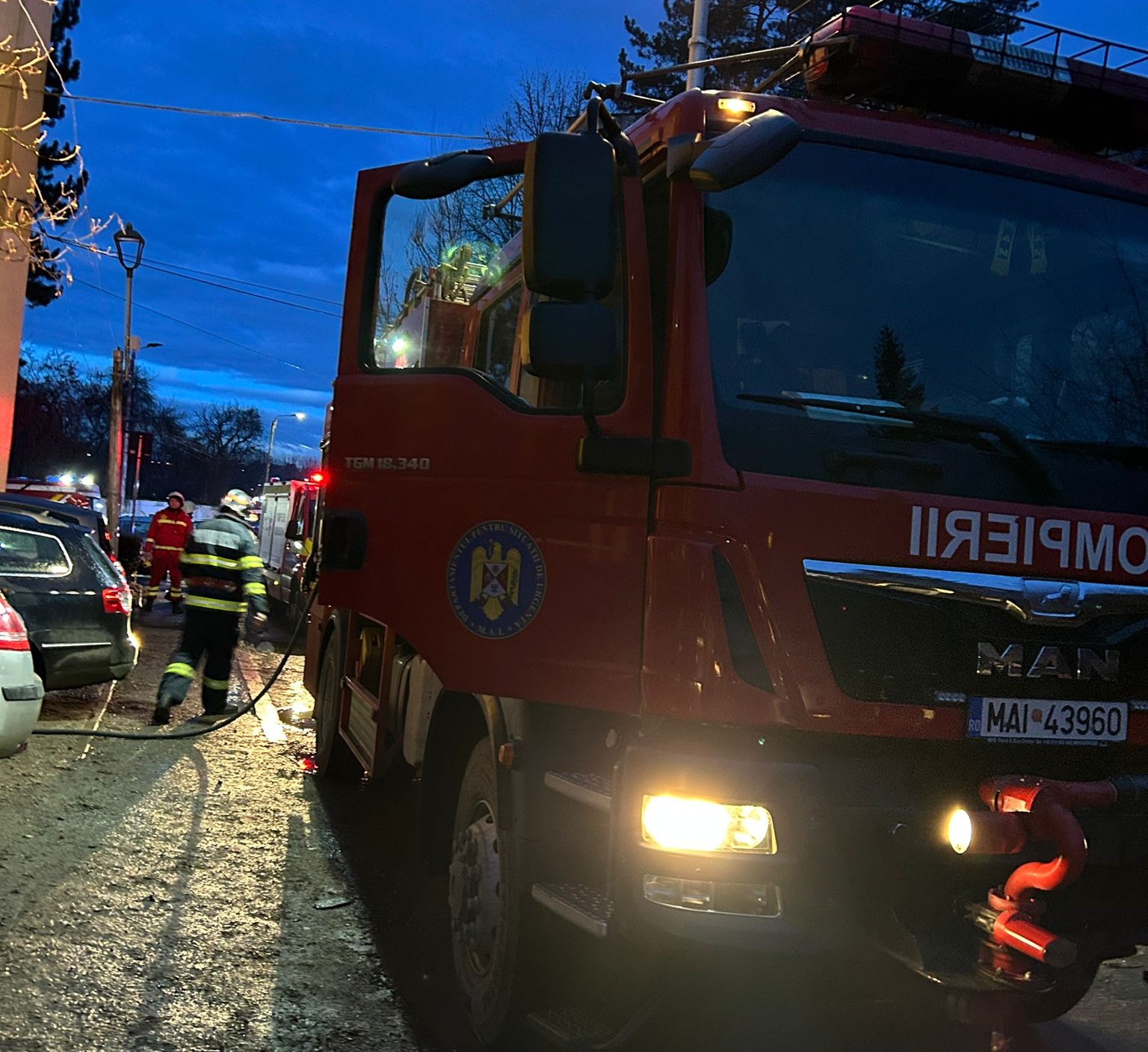 Pompierii s-au deplasat la fata locului o autospeciala de stingere, o autoscara mecanica, o autospeciala pentru descarcerare si doua ambulante SMURD. Din cauza degajarilor de fum, pompierii militari au evacuat cinci persoane, iar alte 16 s-au autoevacuat.