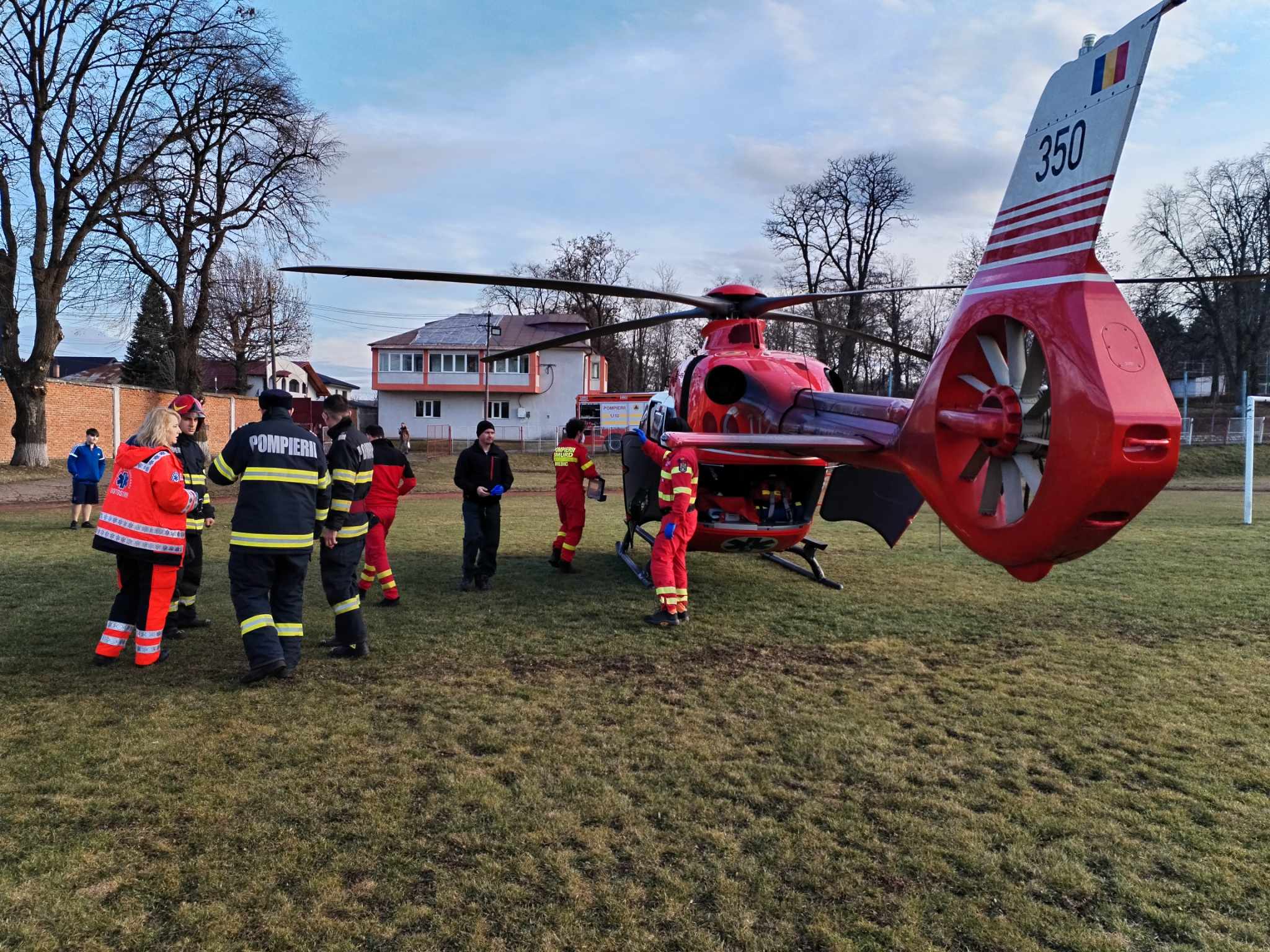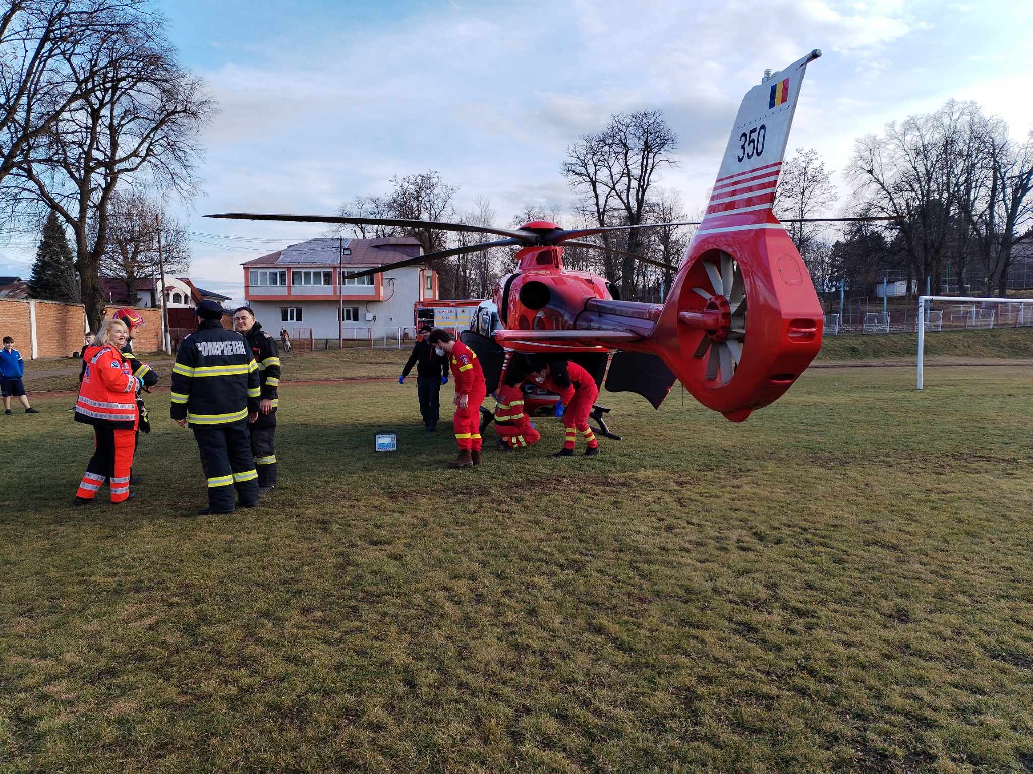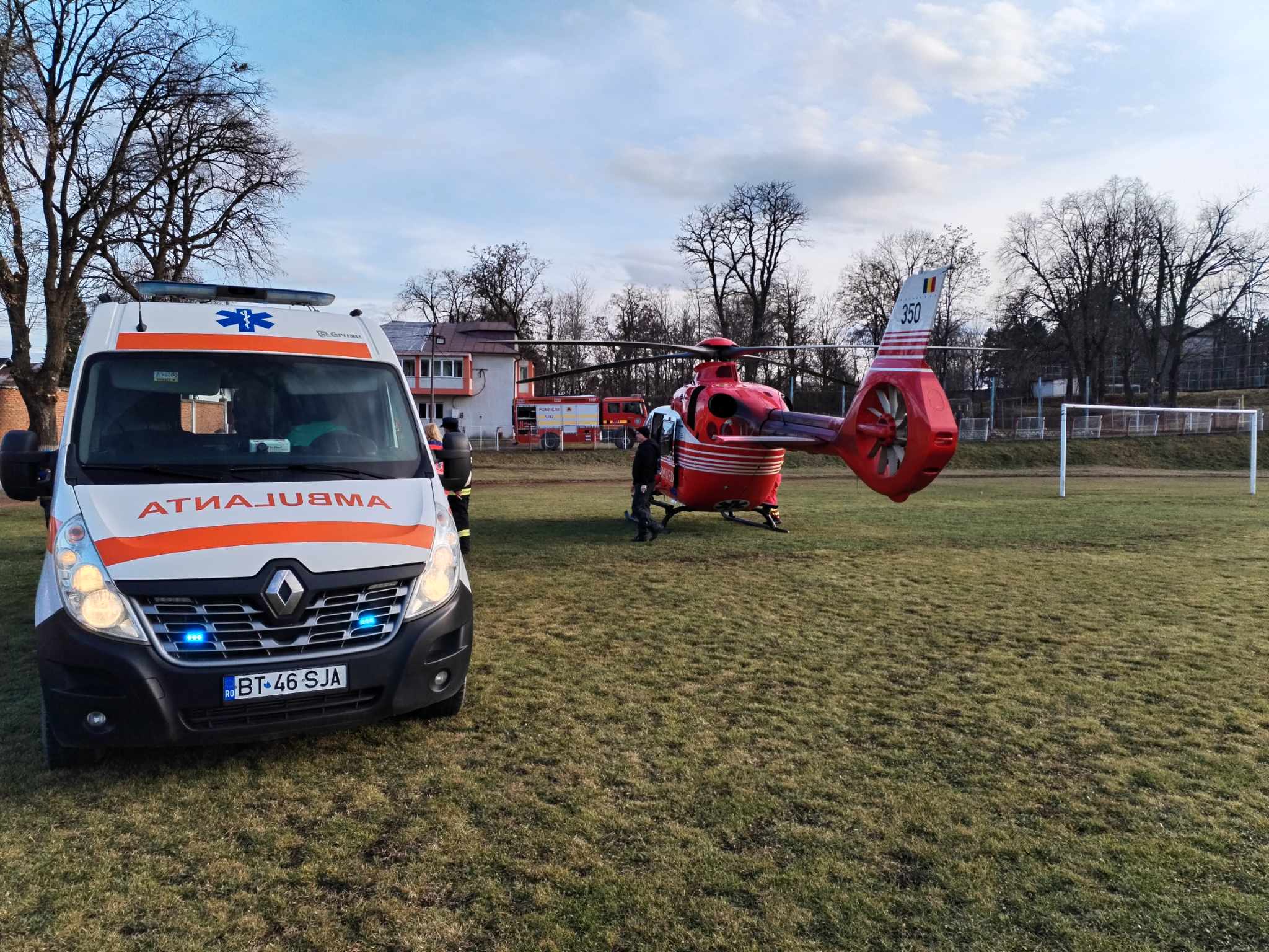 Elicopterul SMURD a aterizat pe Stadionul Dorohoi, iar pacientul a fost transportat la Clinica de Neurochirurgie din Iași. Sâmbătă, elicopterul SMURD a mai preluat un bărbat de 59 de ani cu infarct.
