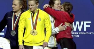 Nina Sterckx a obţinut argintul la smuls, dar în timpul probei de aruncat i s-a făcut rău. A primit îngrijire de urgenţă şi, din fericire, şi-a revenit. Ea a apărut la festivitatea de premiere, acolo unde a urcat pe podium. A primit medalia de argint obţinută la smuls, potrivit as.ro.