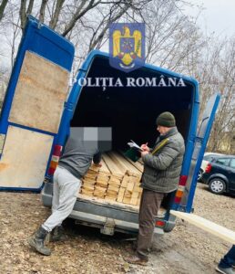 Conducătorul auto a fost sancționat contravențional cu amendă în valoare de 2.000 de lei, iar materialul lemnos a fost supus confiscării, informează printr-un comunicat Inspectoratul de Poliție Județean.