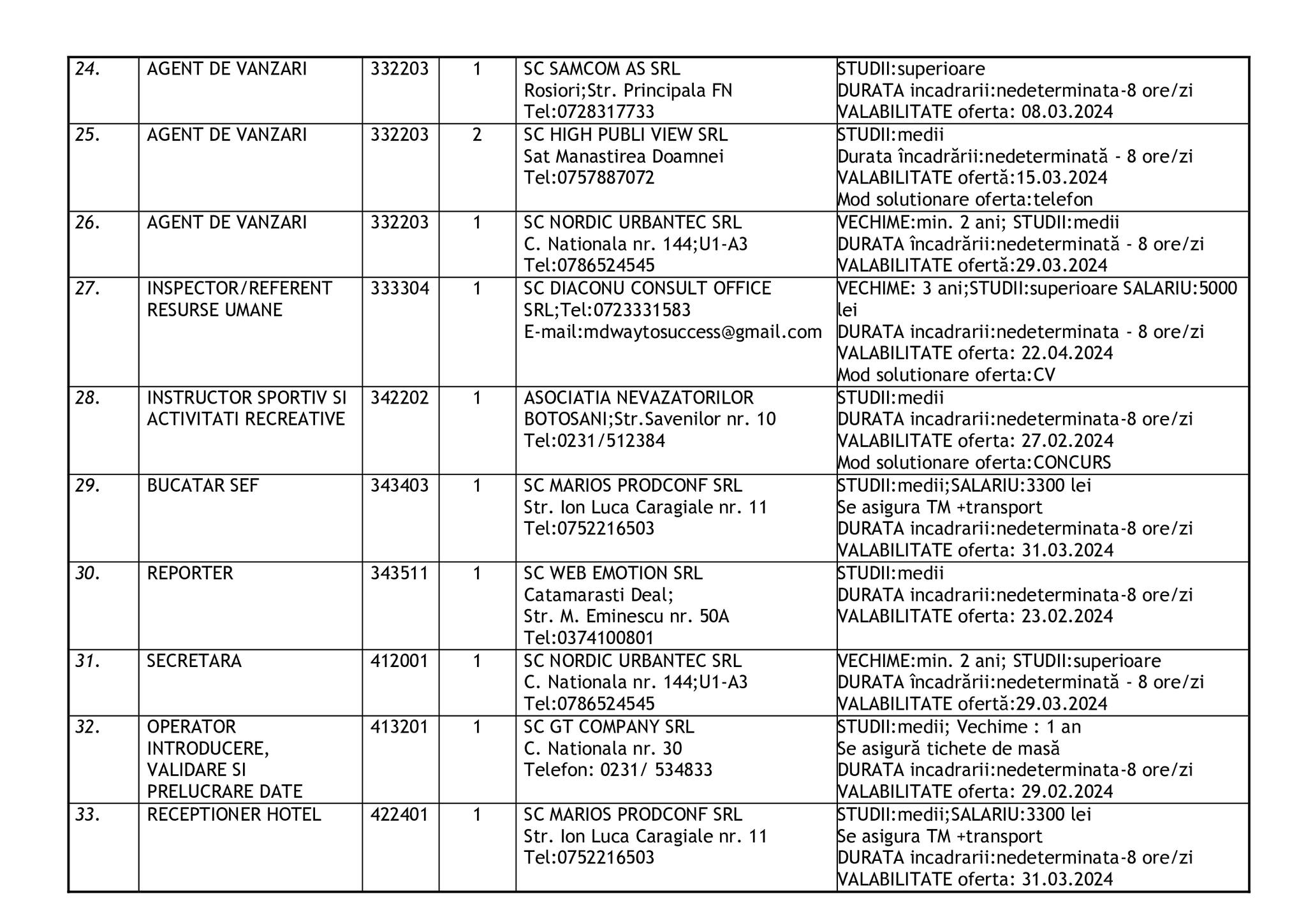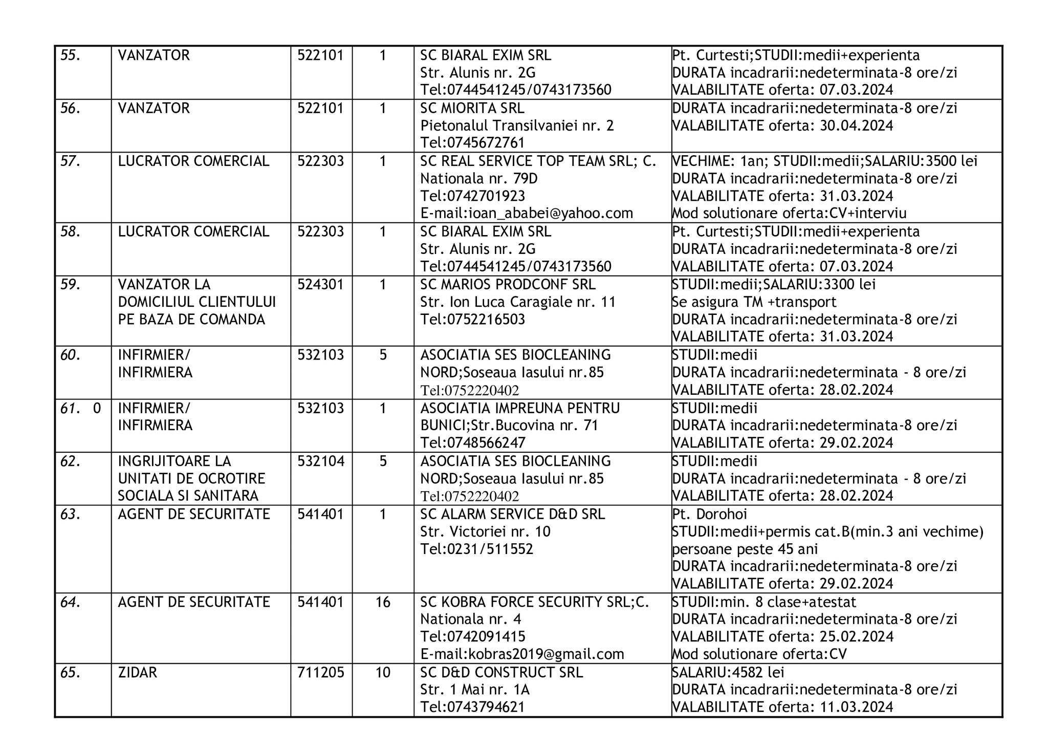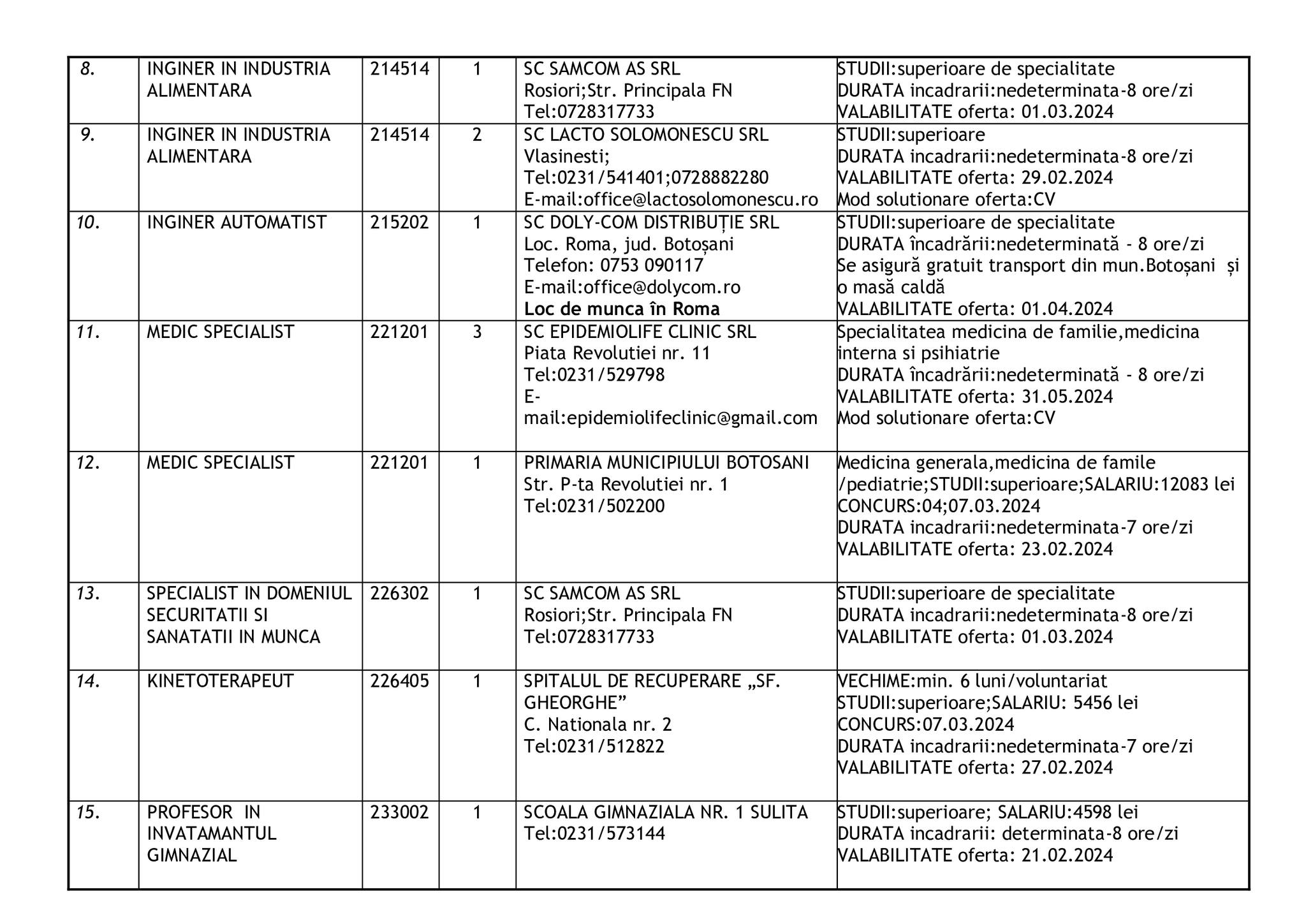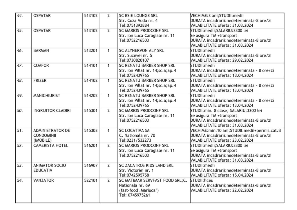 Şomerii botoşăneni pot opta pentru unul din cele 457 de locuri de muncă vacante aflate în baza de date a Agenţiei Judeţene pentru Ocuparea Forţei de Muncă, la data de 19 februarie.