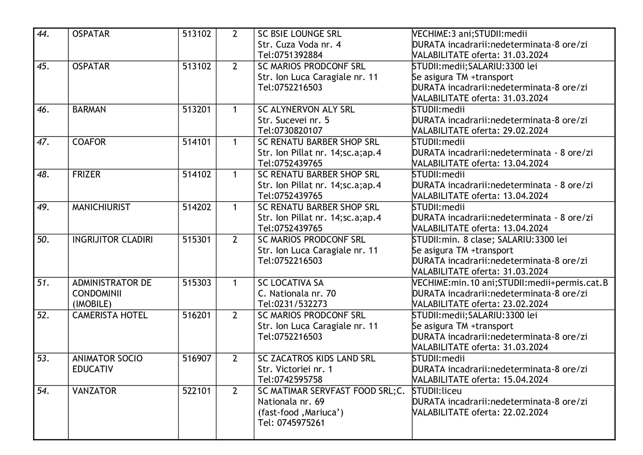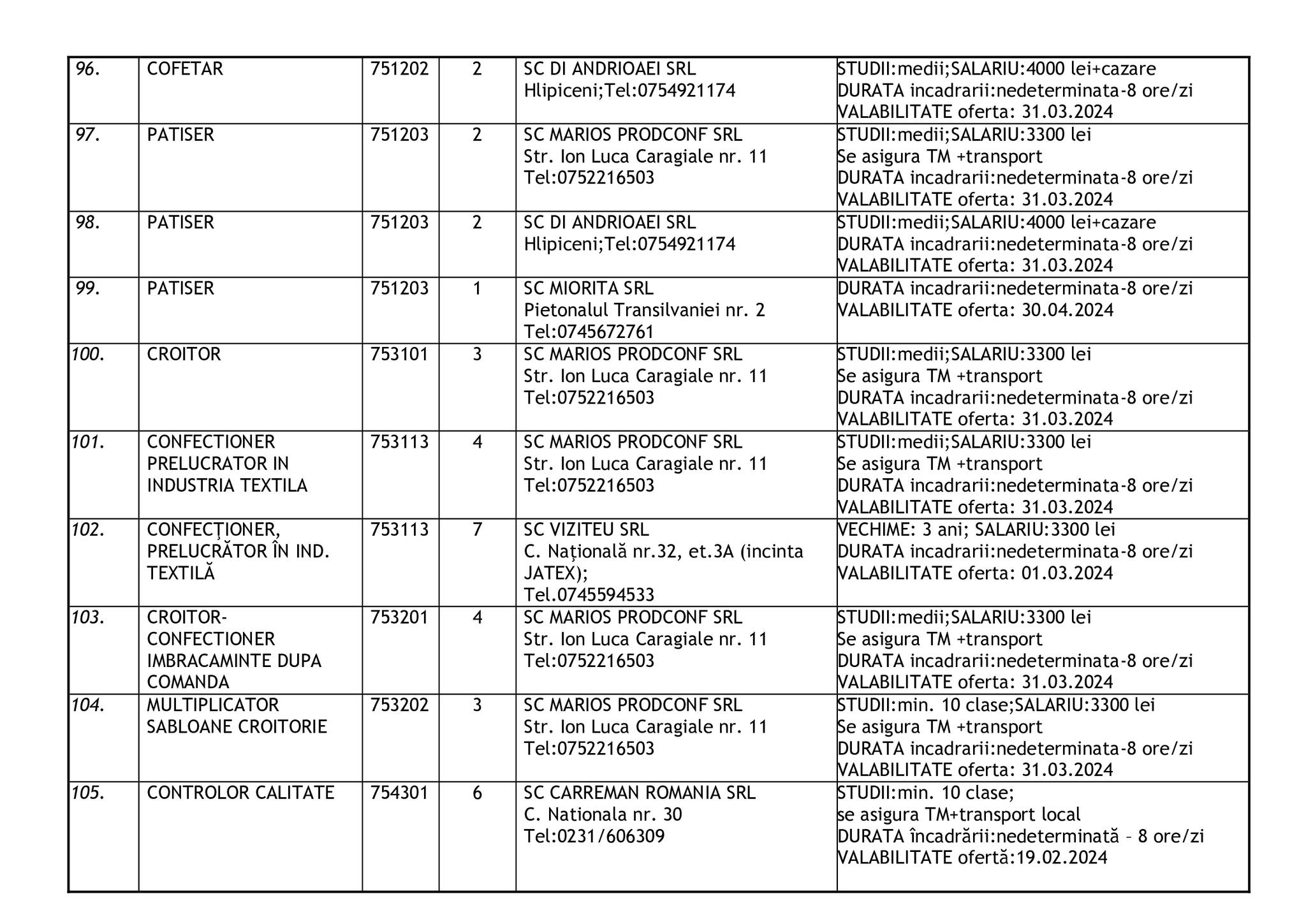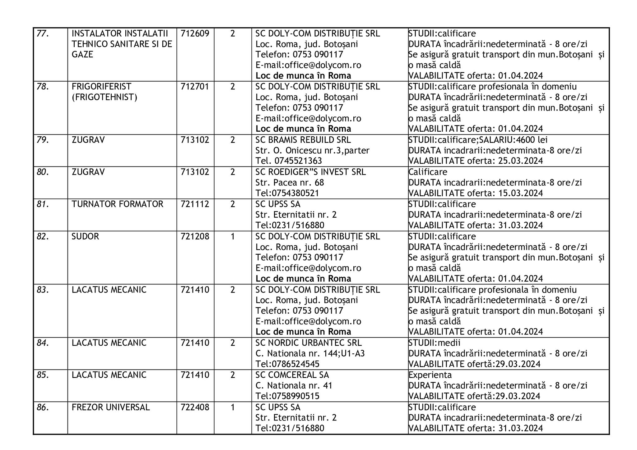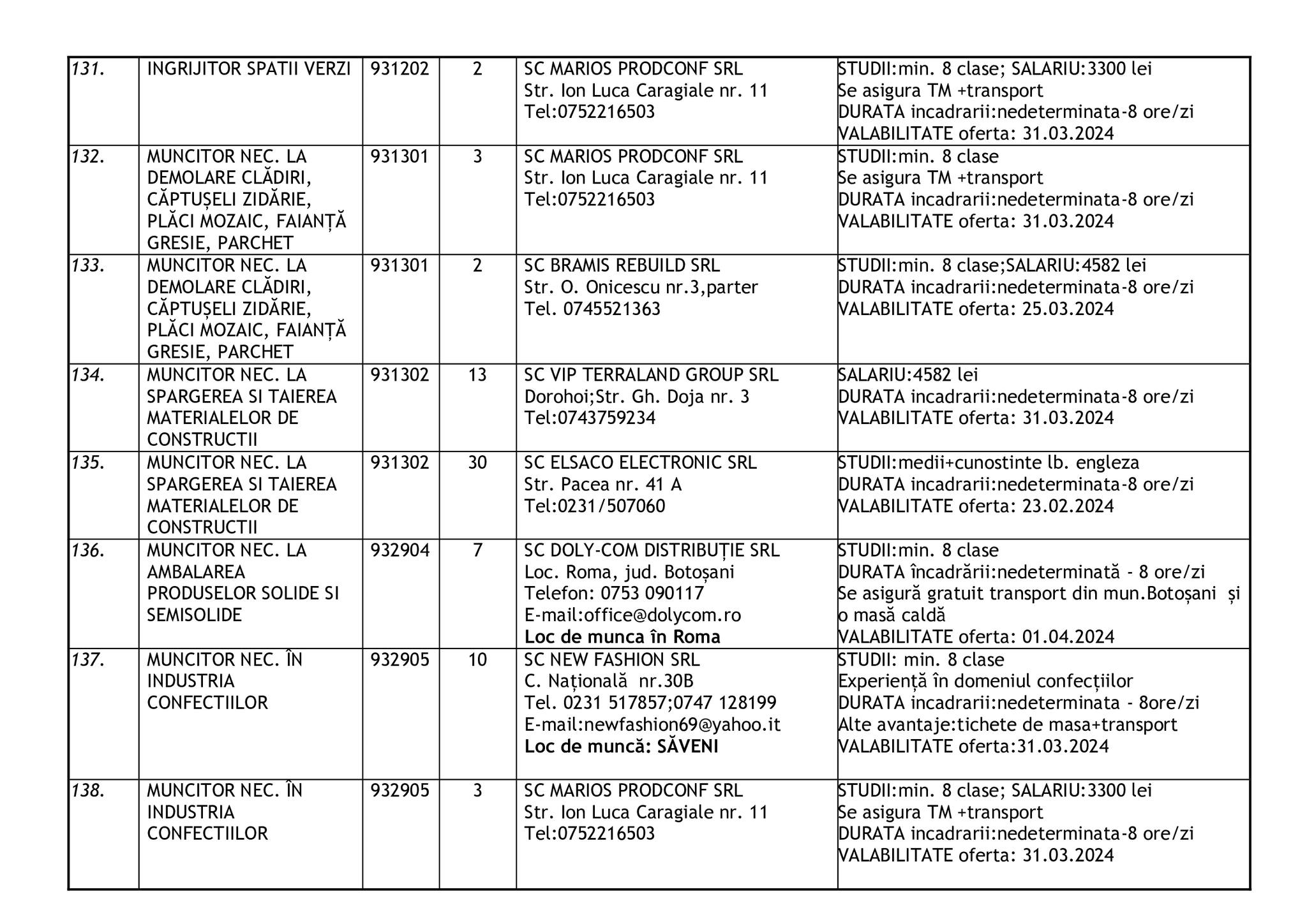 Şomerii botoşăneni pot opta pentru unul din cele 457 de locuri de muncă vacante aflate în baza de date a Agenţiei Judeţene pentru Ocuparea Forţei de Muncă, la data de 19 februarie.