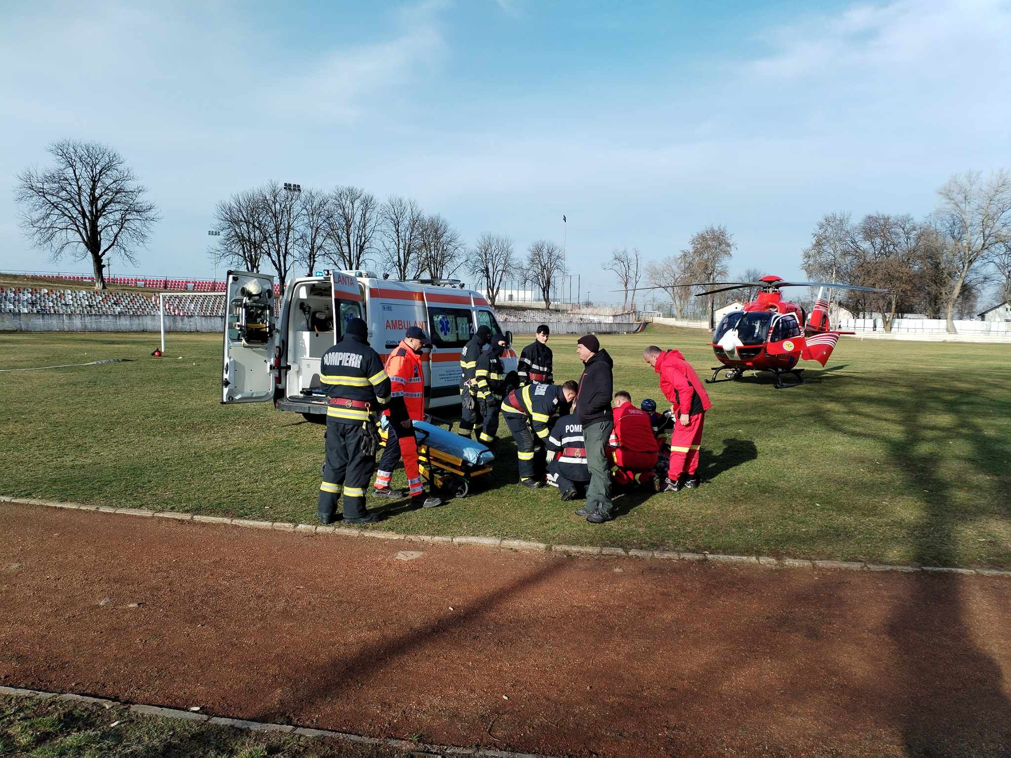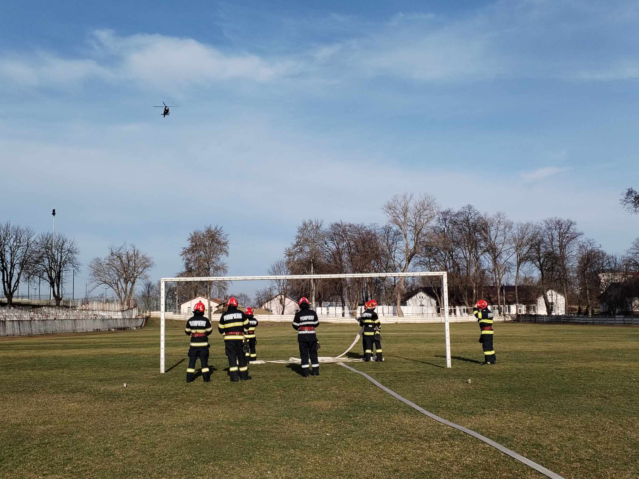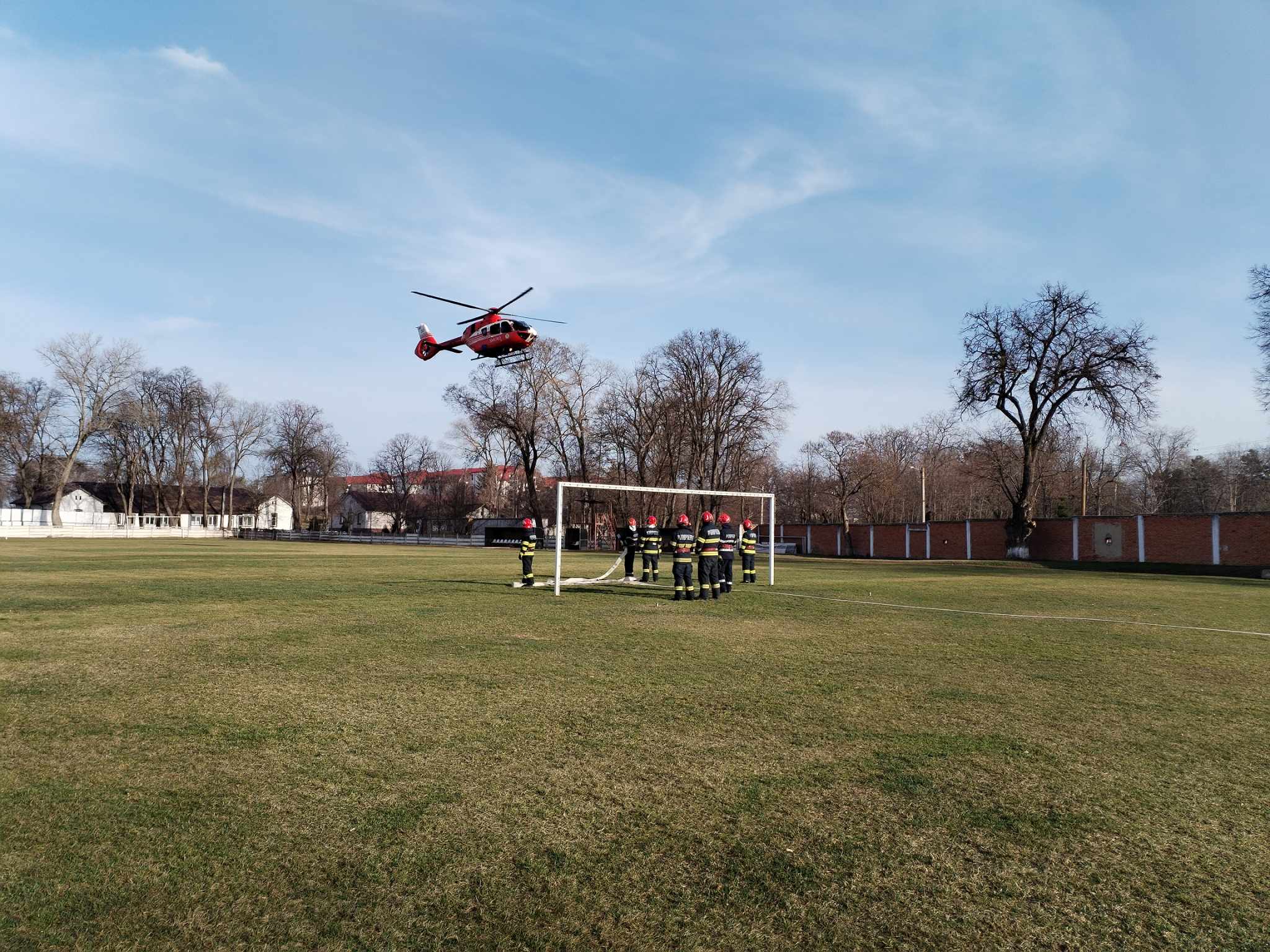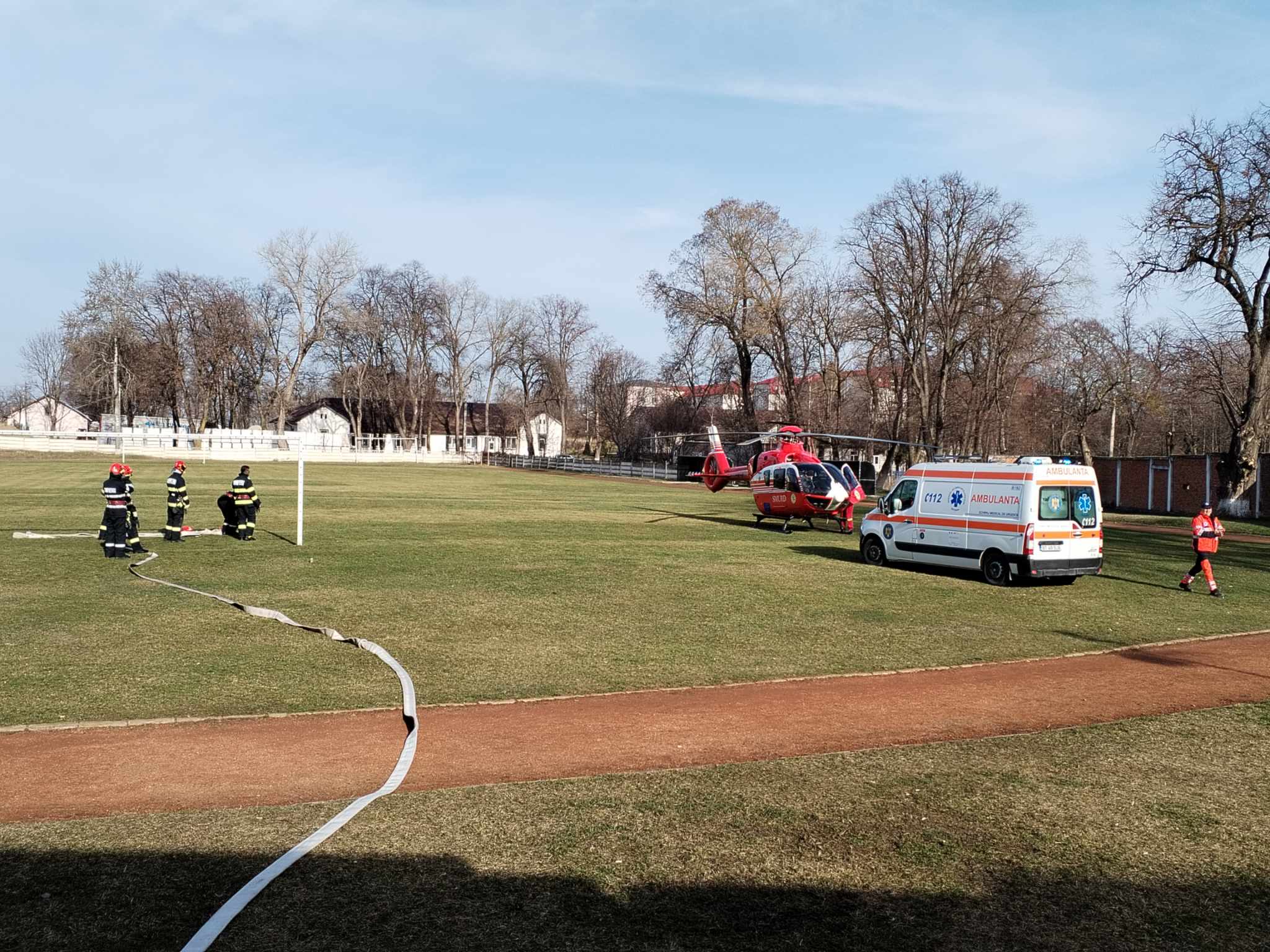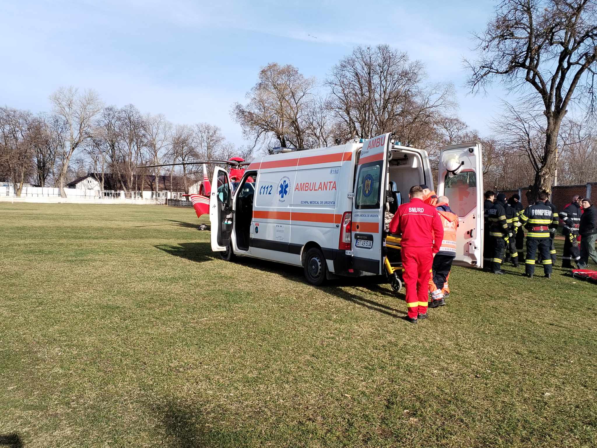 Pompierii din cadrul Detașamentului de Pompieri Dorohoi au intervenit pentru a asigura măsurile la aterizarea și decolarea elicopterului SMURD.