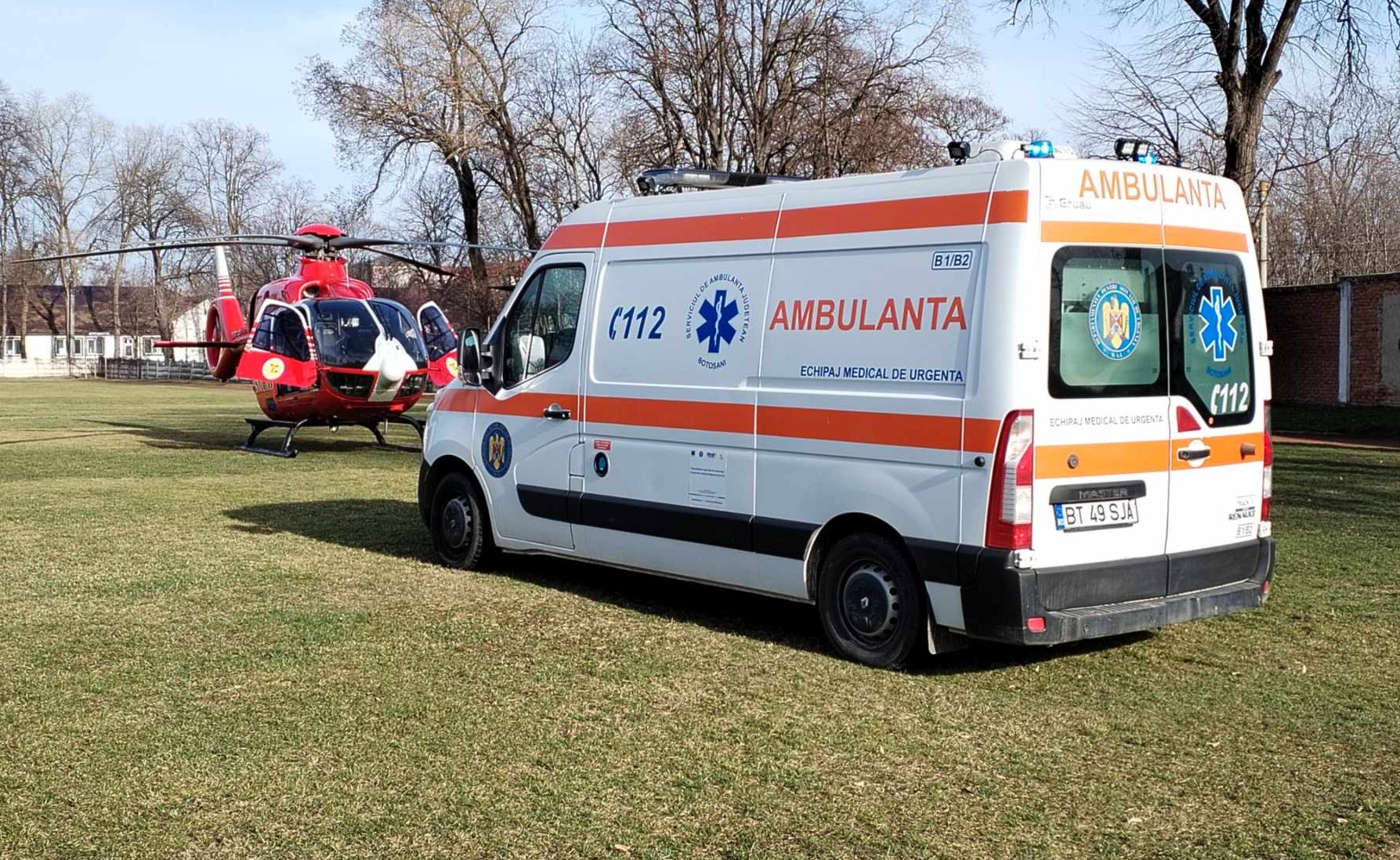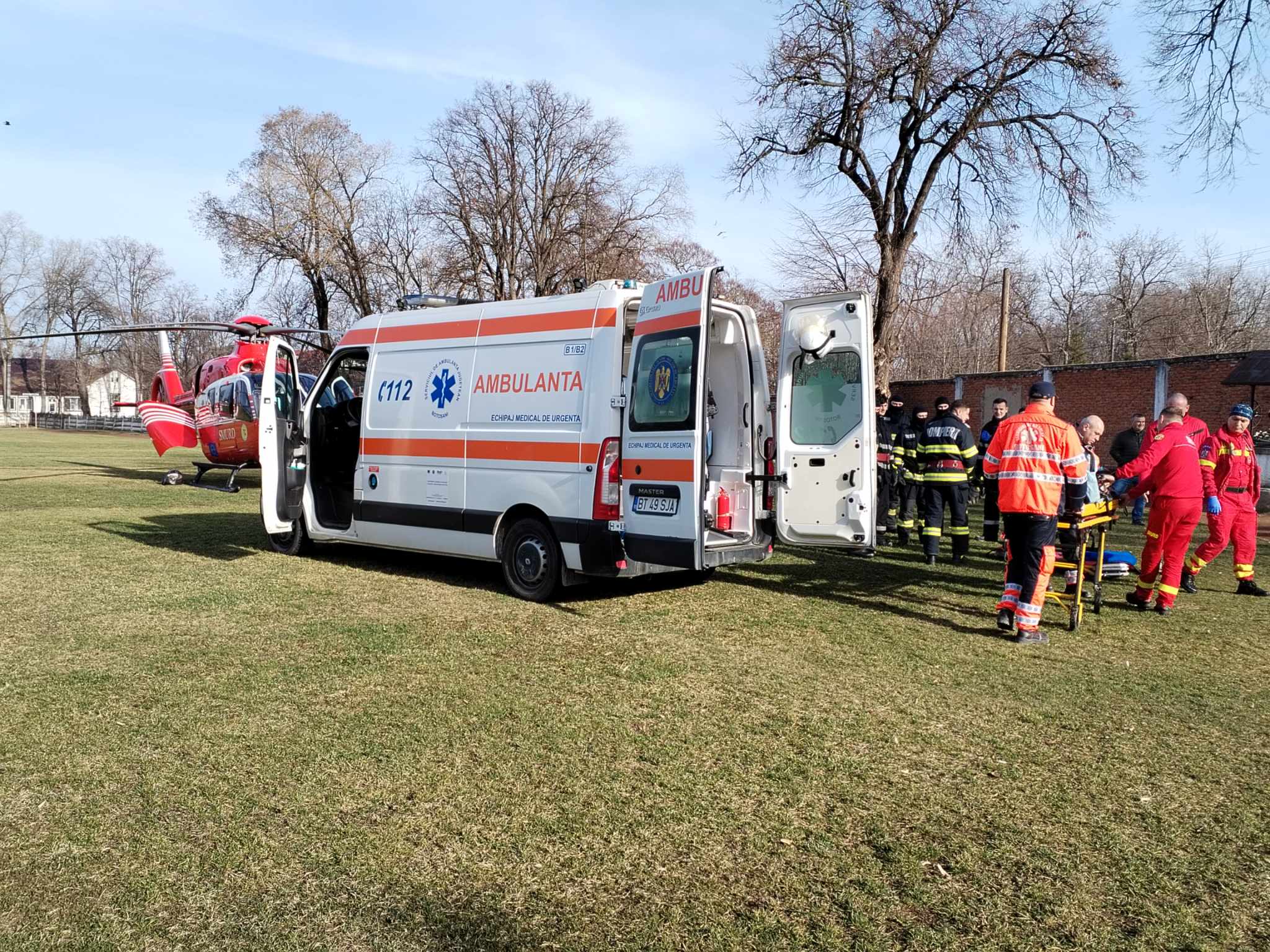 Transferul bărbatului de 76 de ani, din Darabani, către aeronava SMURD s-a făcut cu o ambulanță din cadrul Serviciului de Ambulanță Dorohoi.