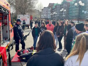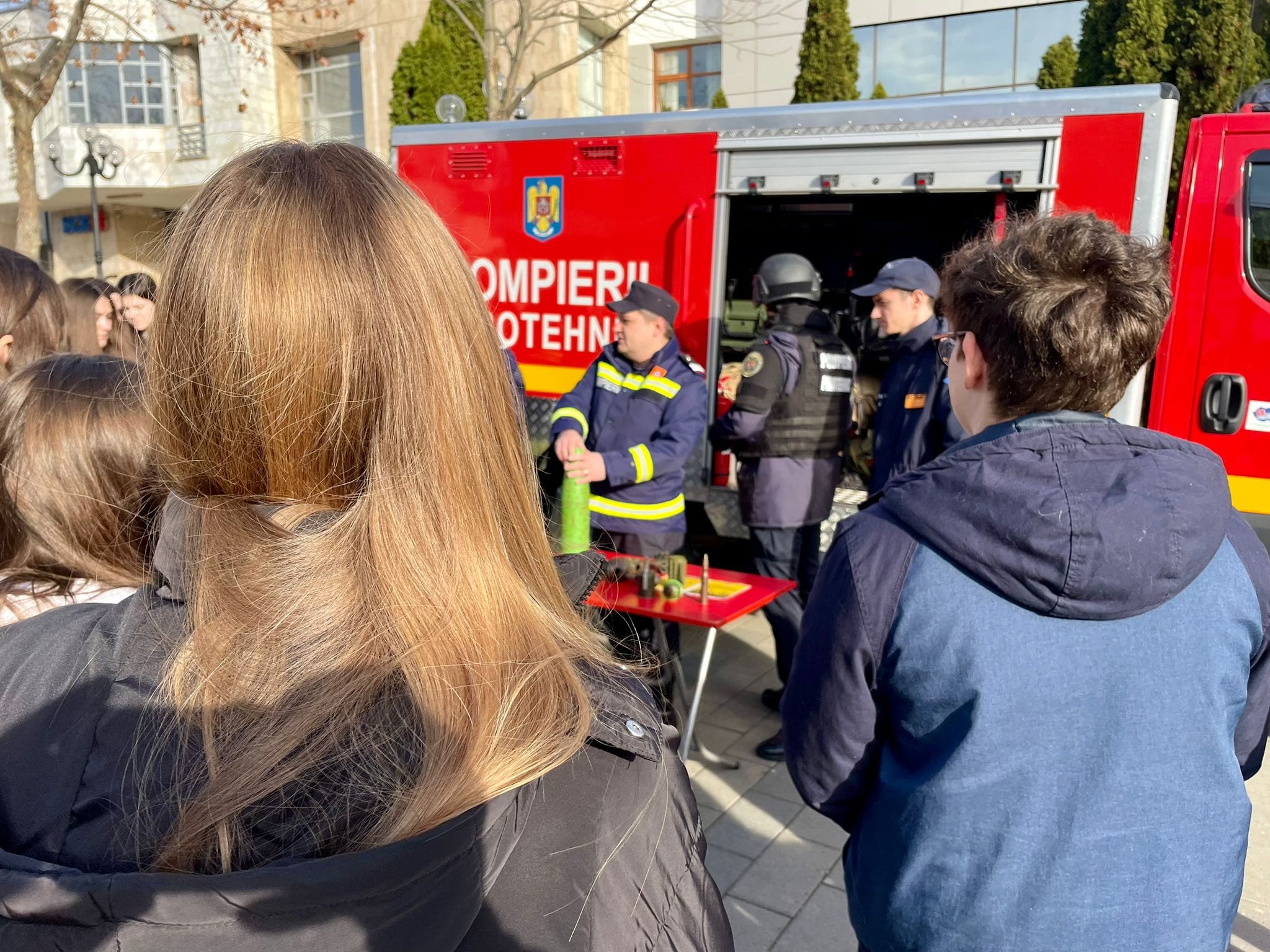 Studenții Facultății de Pompieri din cadrul Academiei de Poliție „Alexandru Ioan Cuza” București le-au explicat liceenilor pașii care trebuie urmați pentru a îmbrățișa meseria de salvator și le-au împărtășit din experiențele personale.