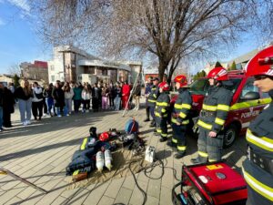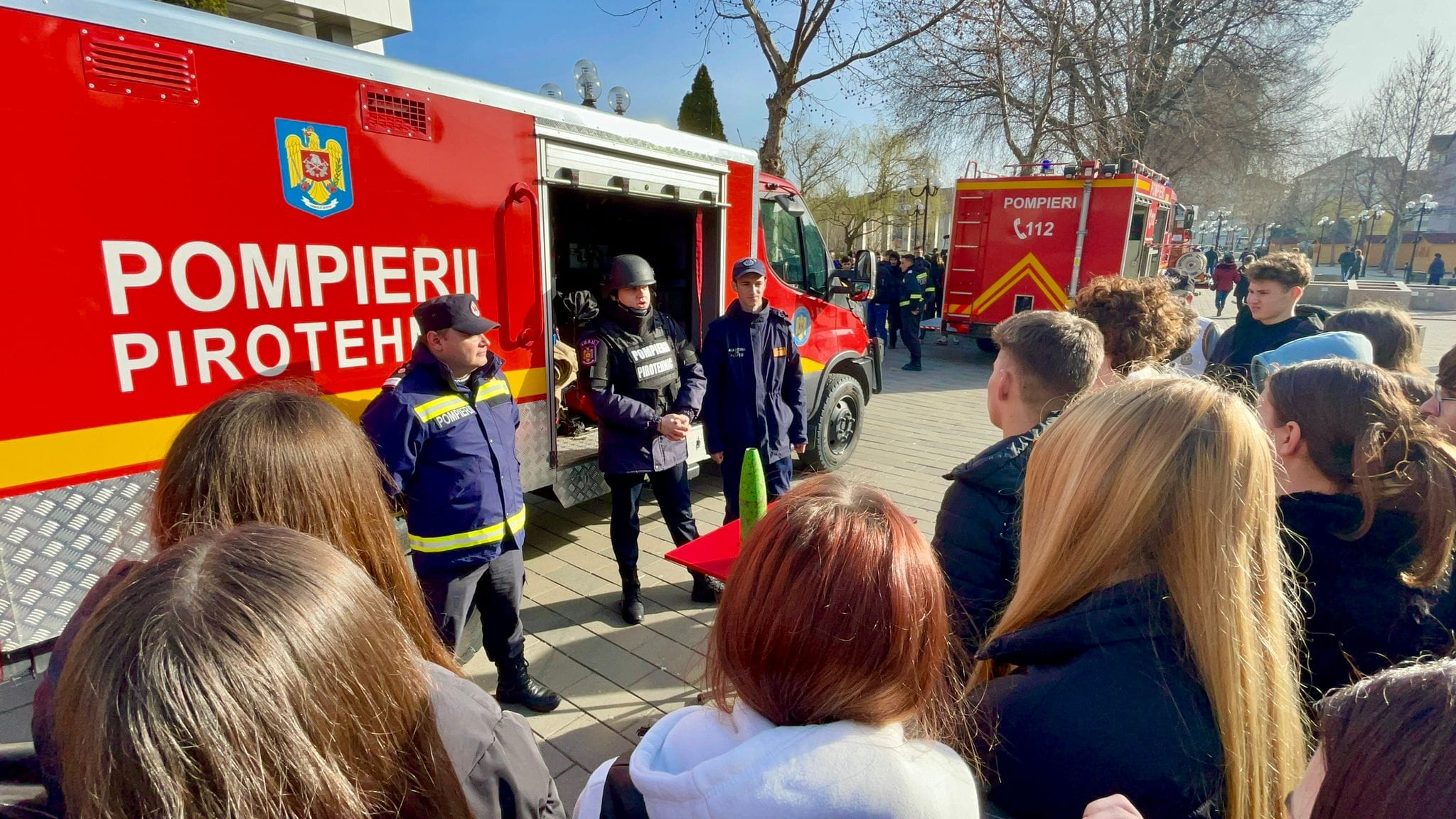 Încă de la primele ore ale dimineții, Pietonalul Ghica din municipiul Dorohoi s-a umplut de elevi și cadre didactice de la Colegiul Național „Grigore Ghica”, Liceul „Regina Maria” și Școlile Gimnaziale nr. 1, 2, 5, 7 și 8, curioși să vadă îndeaproape autospeciala hidroperforare, pirotehnică, de descarcerare, șenilata, kit-ul de salvare din fântâni și sistemul nocturn de iluminat, transmite printr-un comunicat ISU Botoșani.