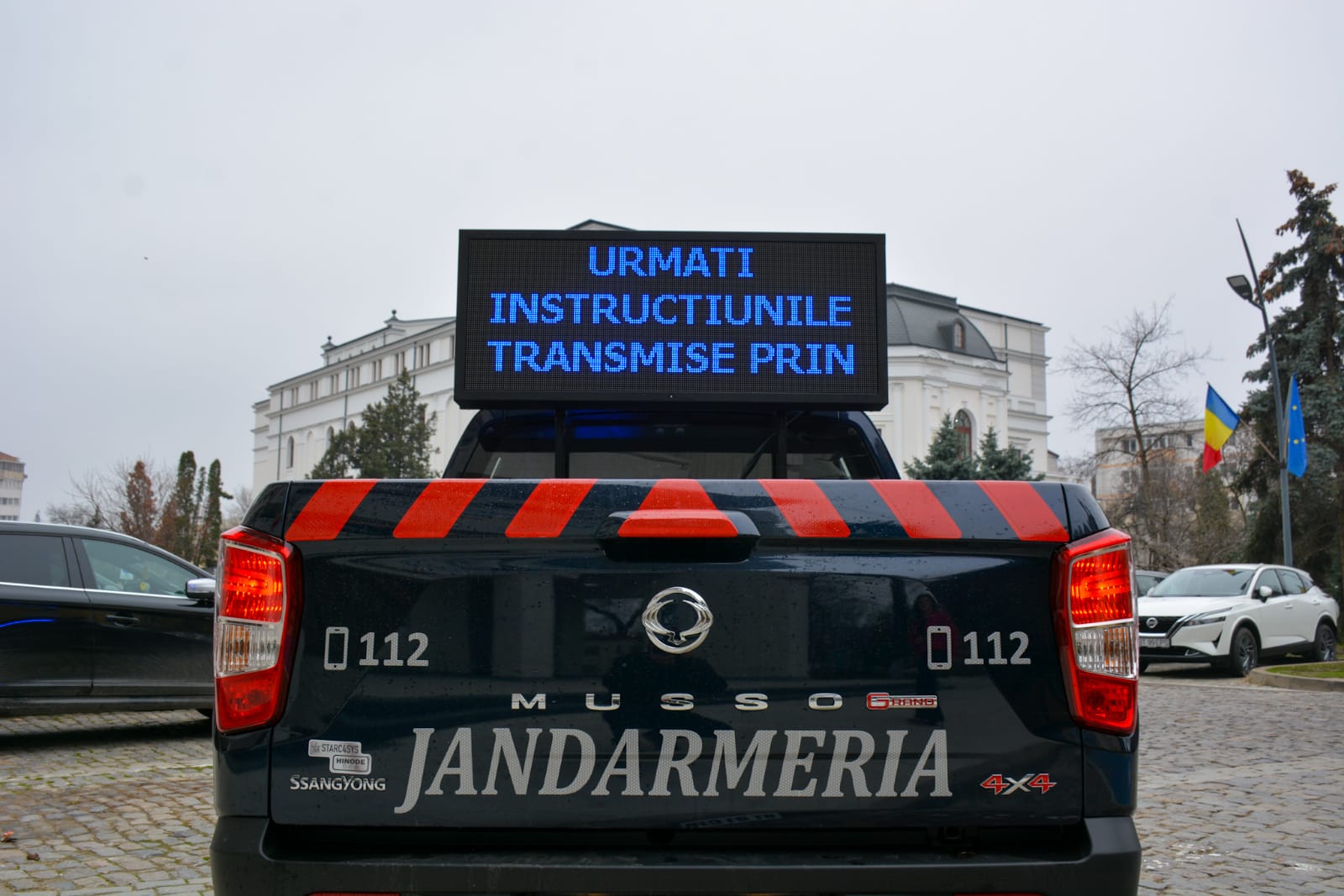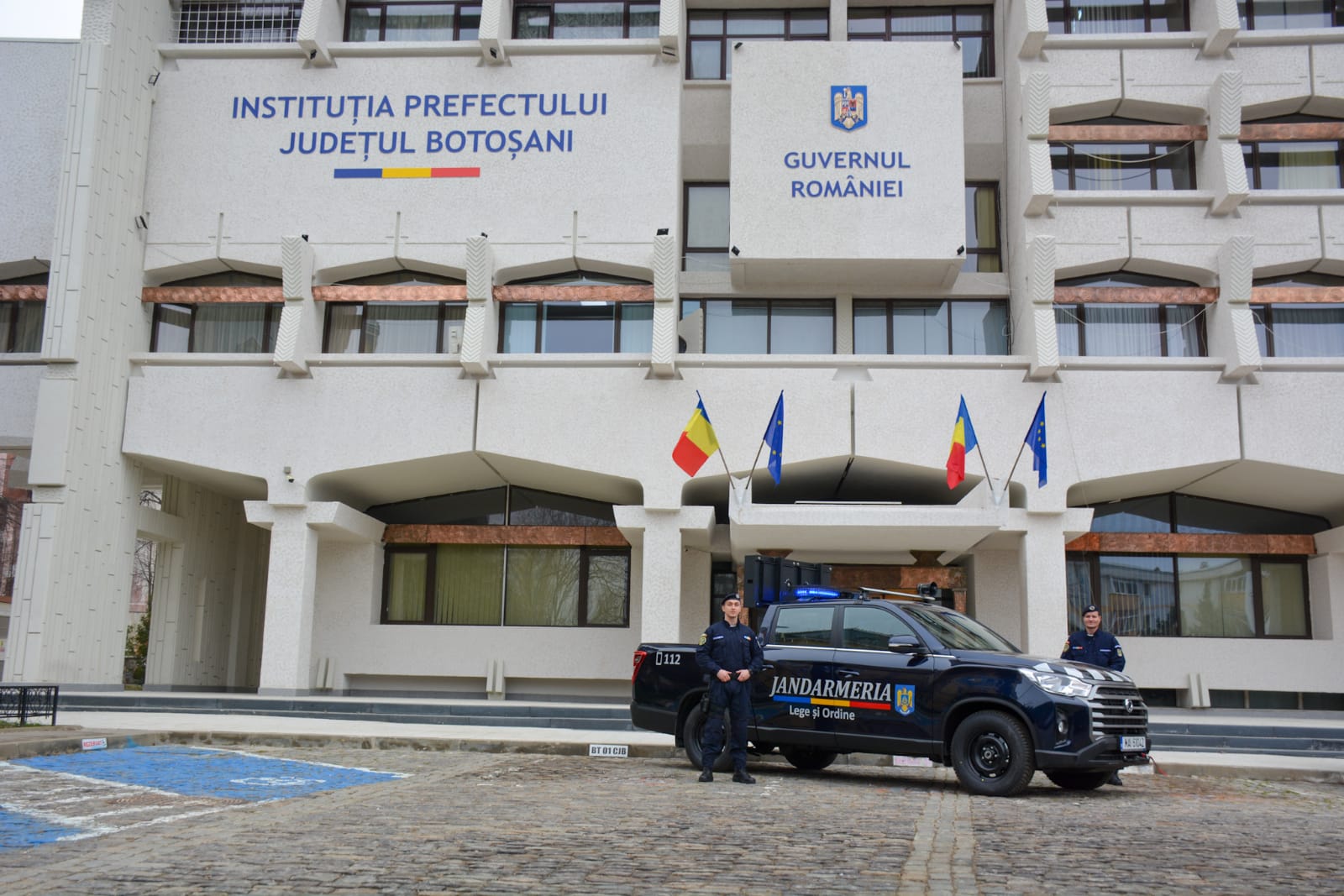Inspectoratul de Jandarmi Județean Botoșani și-a completat astfel parcul auto cu un vehicul marca SsangYong Musso Grand Style, destinat consolidării capacităților de intervenție în situații de urgență în zonele afectate de dezastre, în scopul evaluării efectelor acestora, transmiterii mesajelor de informare, precum și pentru captarea imaginilor din aceste zone, fiind potrivit pentru terenurile dificile și drumurile accidentate, dar și în cadrul altor misiuni executate de jandarmii botoșăneni.