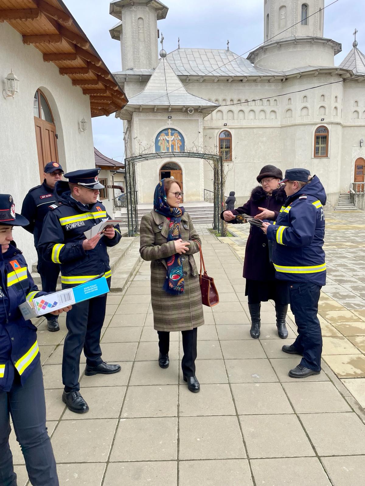 Salvatorii le-au vorbit oamenilor aflați în apropierea bisercilor despre măsurile pe care trebuie să le adopte pentru a preveni implicarea în situații de urgență. Cu acest prilej, le-au oferit materiale de informare preventivă, din cadrul campaniilor naționale “R.I.S.C – Renunță, Improvizațiile sunt Catastrofale”, “Ai grijă la cea mai mare grijă: siguranța copilului tău” și “Nu tremur la cutremur”.