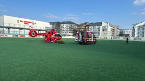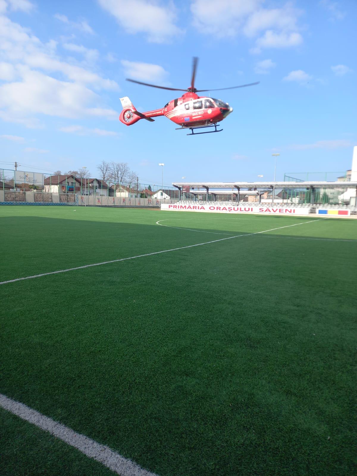 Elicopterul SMURD a fost chemat, astăzi, la Botoșani, pentru a-l prelua pe bărbatul care a suferit arsuri în urma incendiului de la Săveni. Ambulanța aeriană a aterizat pe terenul de la Sala Sporturilor din Săveni, pentru a-l transporta la un spital de specialitate din Iași.