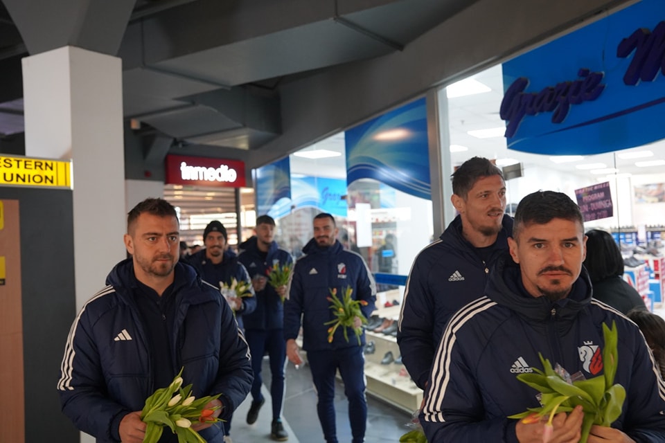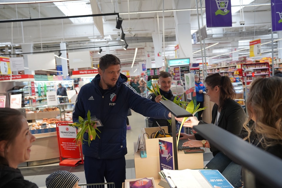 Jucătorii FC Botoşani au împărţit, de 8 Martie, flori doamnelor şi domnişoarelor, într-unul dintre centrele comerciale din oraș. Înainte de meciul cu Farul, întreg lotul echipei s-a reunit pentru a înmâna flori reprezentantelor sexului frumos.