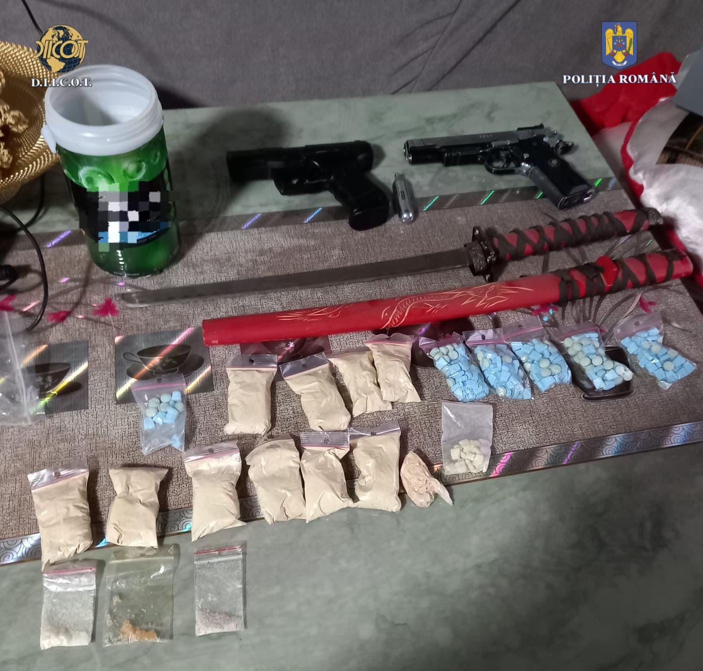 În cursul zilei de ieri, 12 martie, au fost puse în aplicare 33 de mandate pe percheziție domiciliară în județul Suceava, fiind descoperite și ridicate aproximativ 200 de comprimate de diverse forme imprimate cu desene și logouri, pungi de diferite dimensiuni conținând substanțe sub formă de pulbere, cristal și fragmente vegetale, borcane și plicuri conținând substanță vegetală.