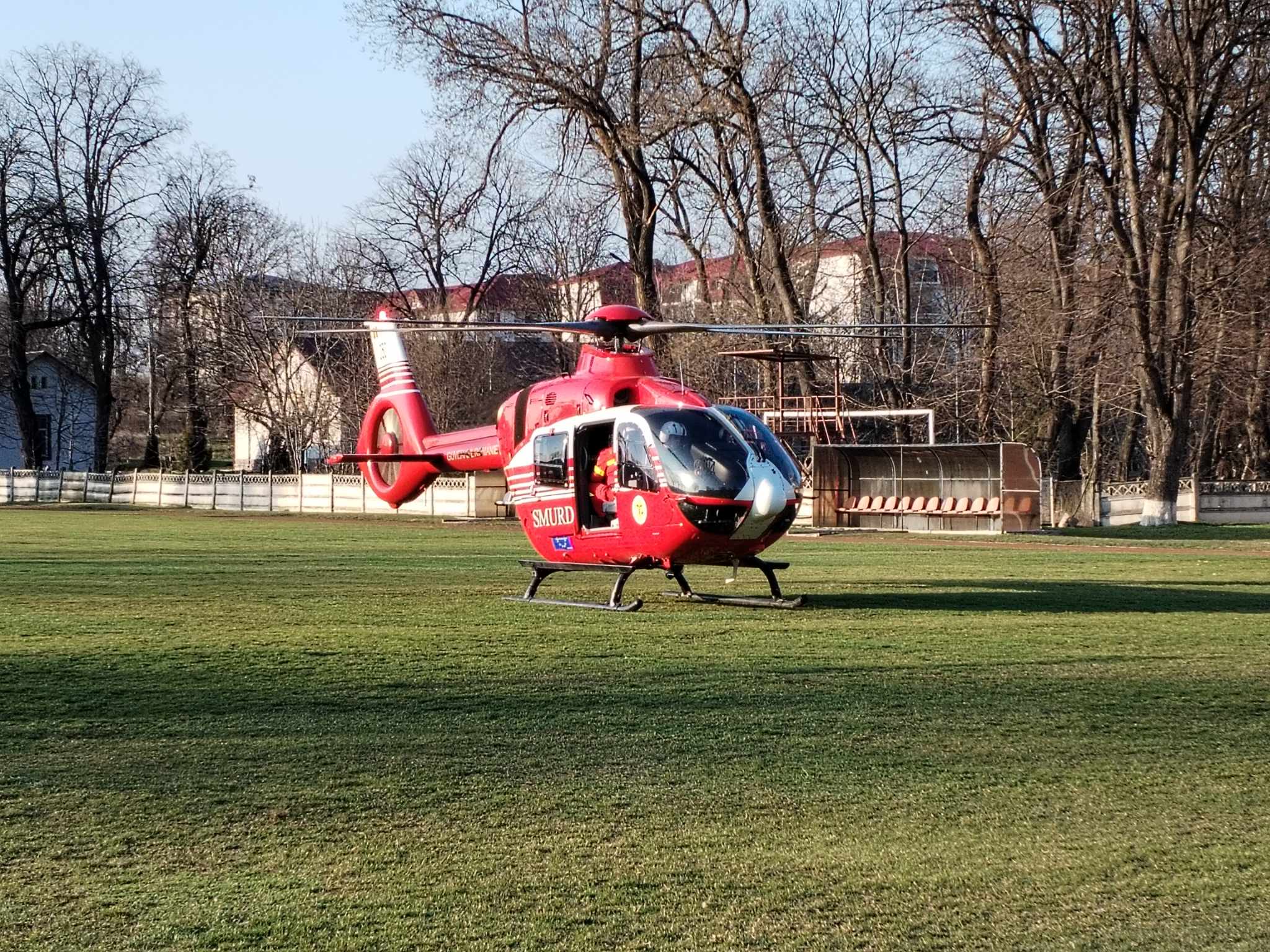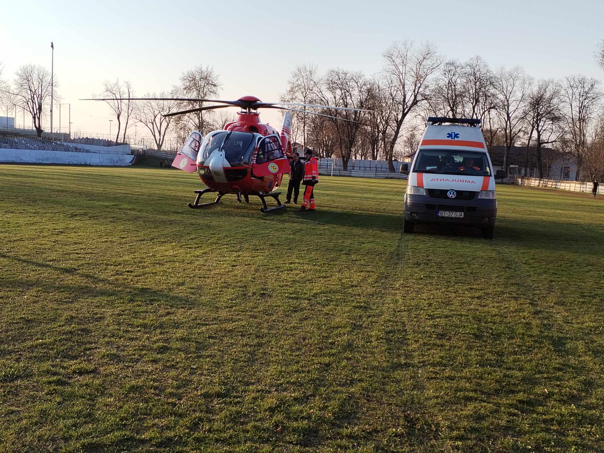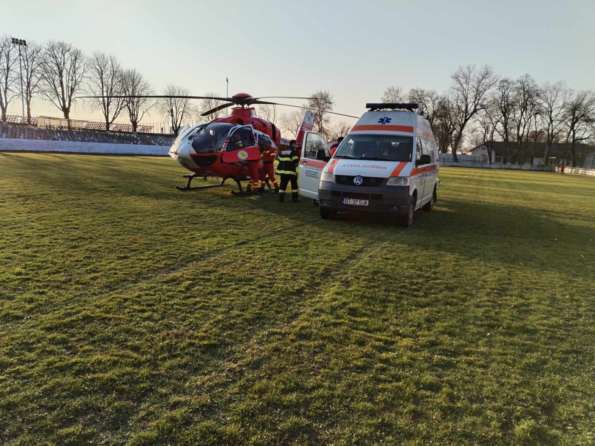 Aeronava SMURD a aterizat pe stadionul municipal din Dorohoi pentru a-l prelua pe botoșănean.