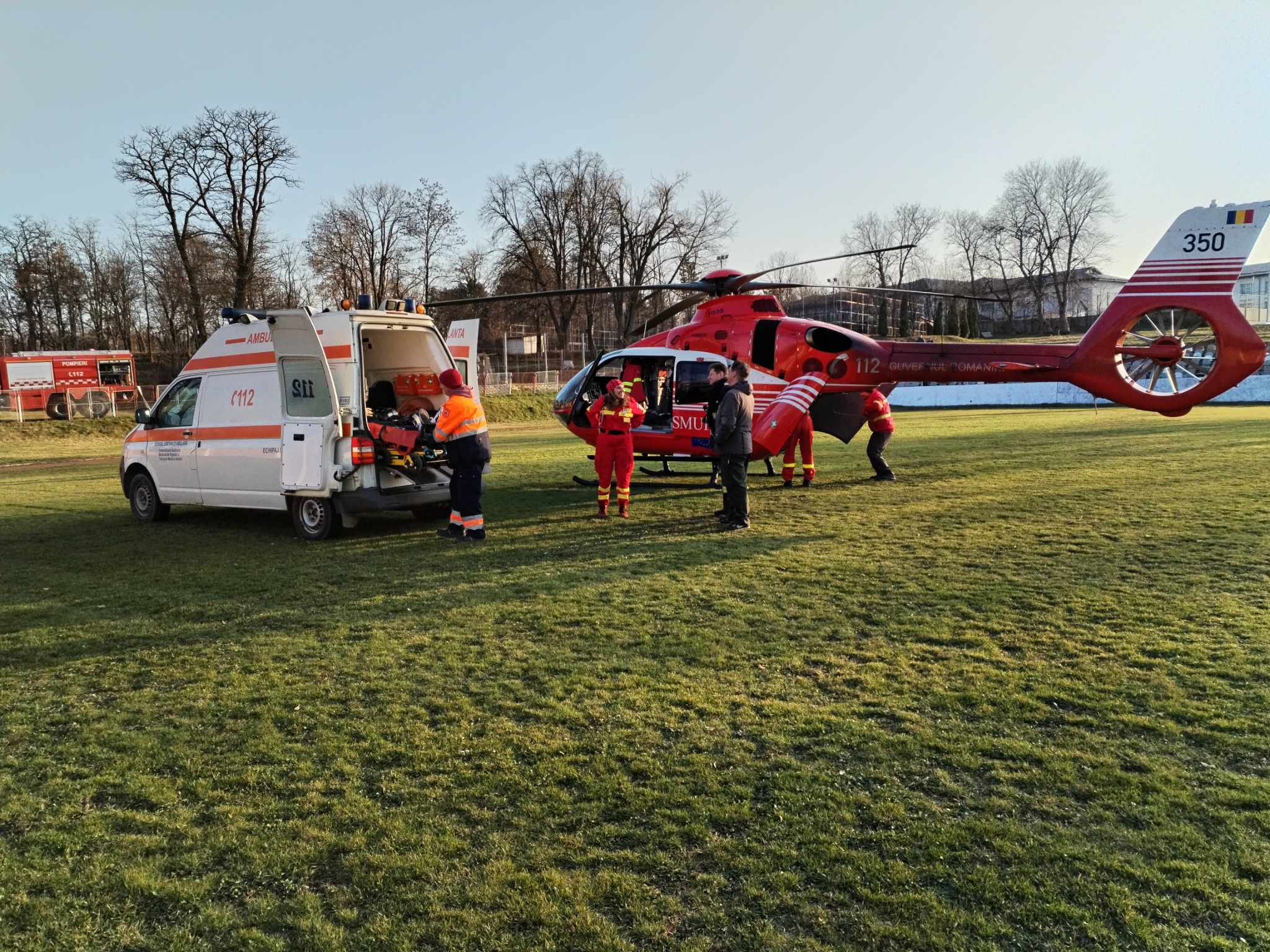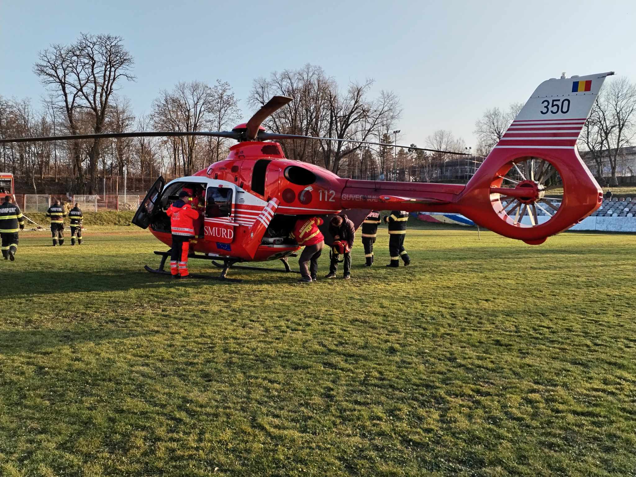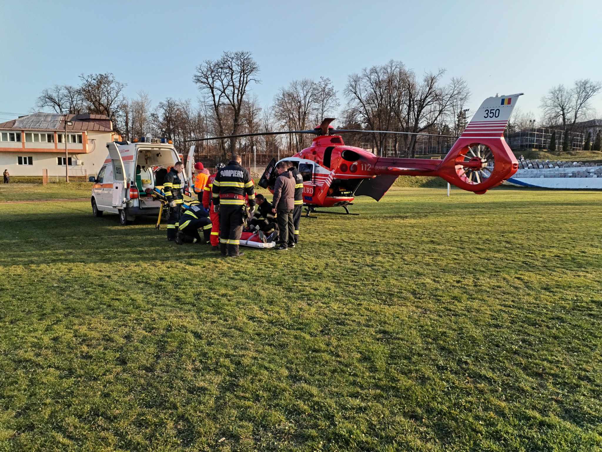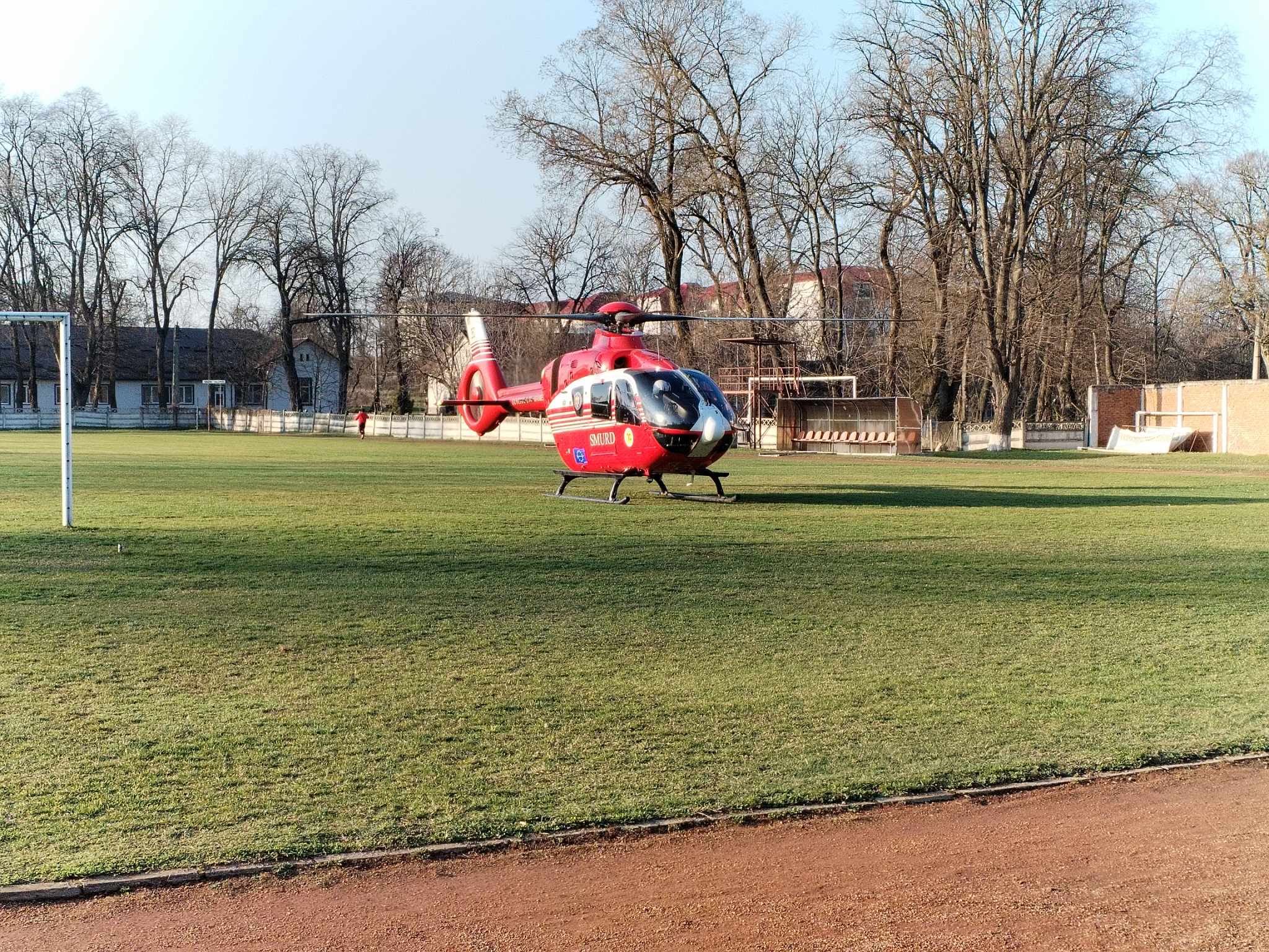 Aeronava SMURD a aterizat pe stadionul municipal din Dorohoi pentru a-l prelua pe botoșănean.