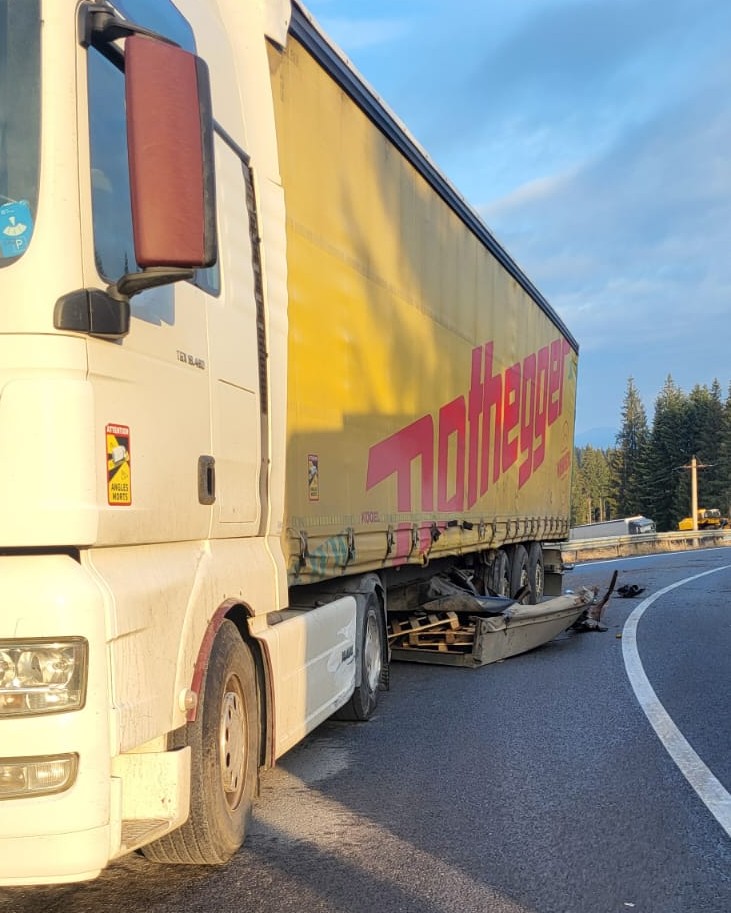 Când a ajuns într-o curbă deosebit de periculoasă la dreapta, semnalizată corespunzător, acesta a adormit la volan, a pătruns pe contrasens, intrând în coliziune cu ansamblul de vehicule care tracta semiremorca, condus de Dumitru, de 64 ani, din comuna Verești, care se deplasa regulamentar din sens opus.