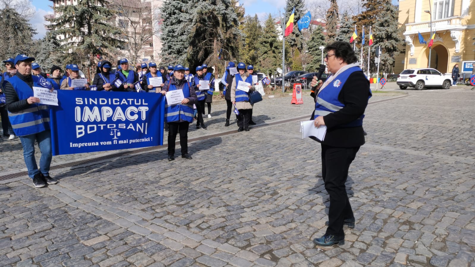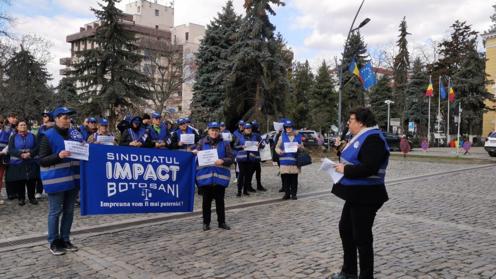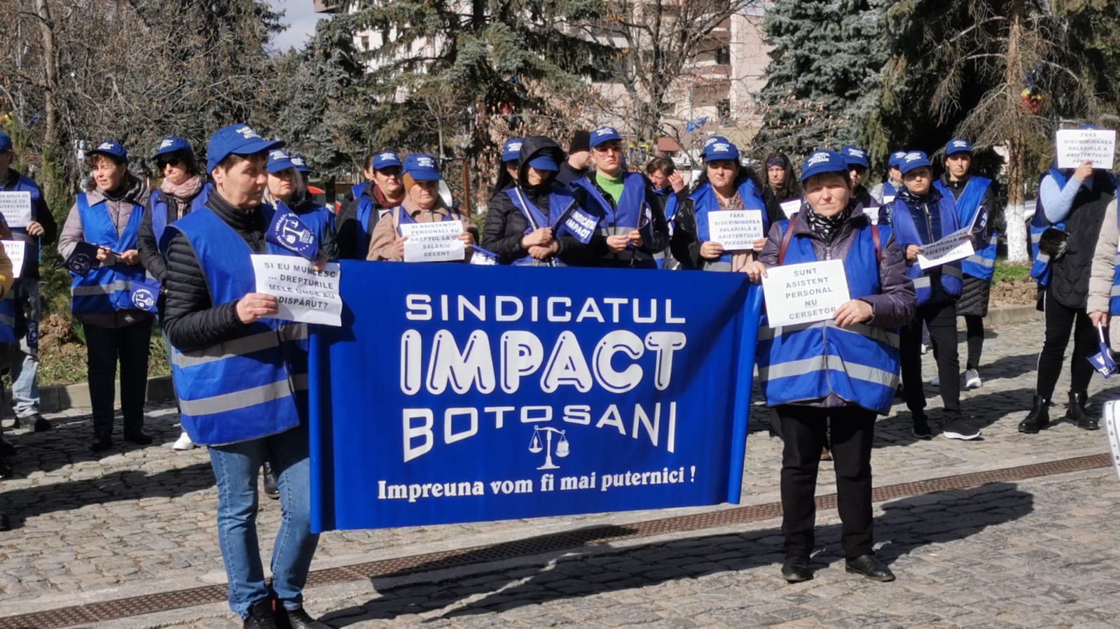 Zeci de asistenți ai persoanelor cu handicap au pichetat în fața Instituției Prefectului pentru drepturile salariale, protestul fiind organizat de Sindicatul Impact Botoșani.