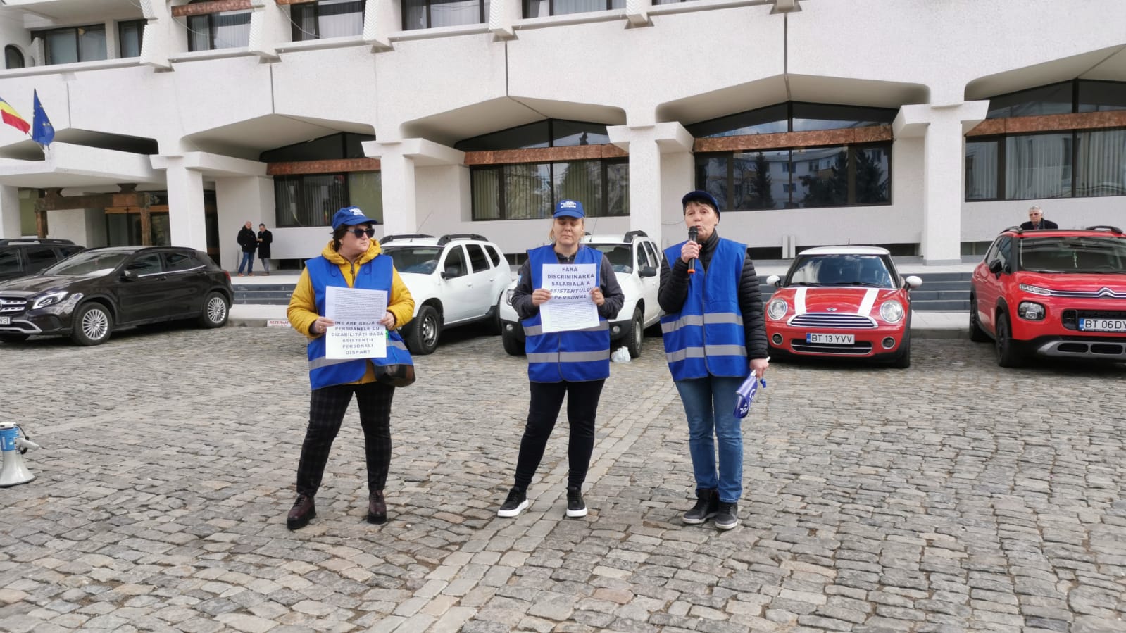 FOTO & VIDEO Asistent personal, la protestul din fața Prefecturii: Suntem denigrați, umiliți, suntem excluși, nevăzuți, uitați. Ni se taie orice aripă