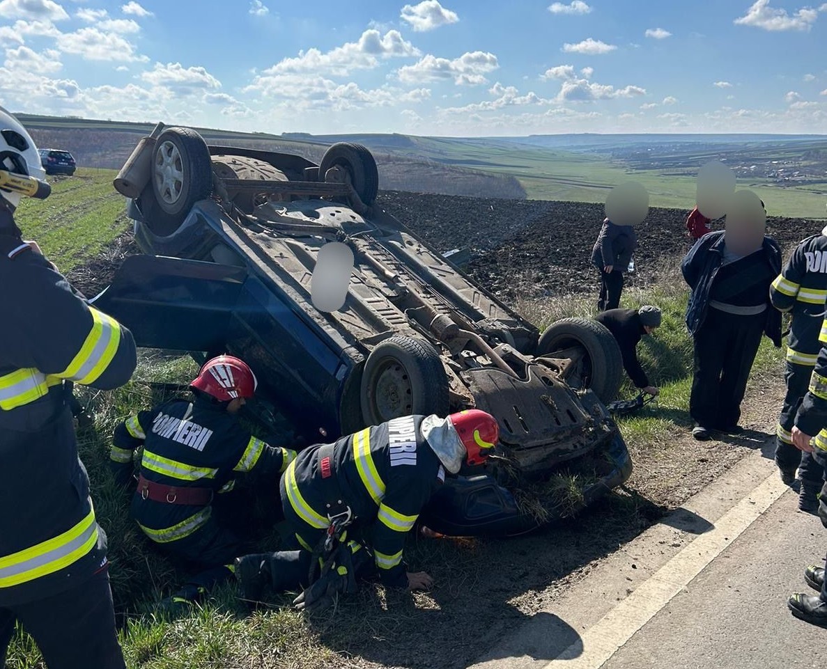 Un accident rutier s-a produs, marţi dimineaţă, pe drumul naţional DN 29 din judeţul Botoşani. O maşină s-a răsturnat pe cupolă, după ce şoferul acesteia a efectuat o depăşire şi a acroşat celălalt autoturism.